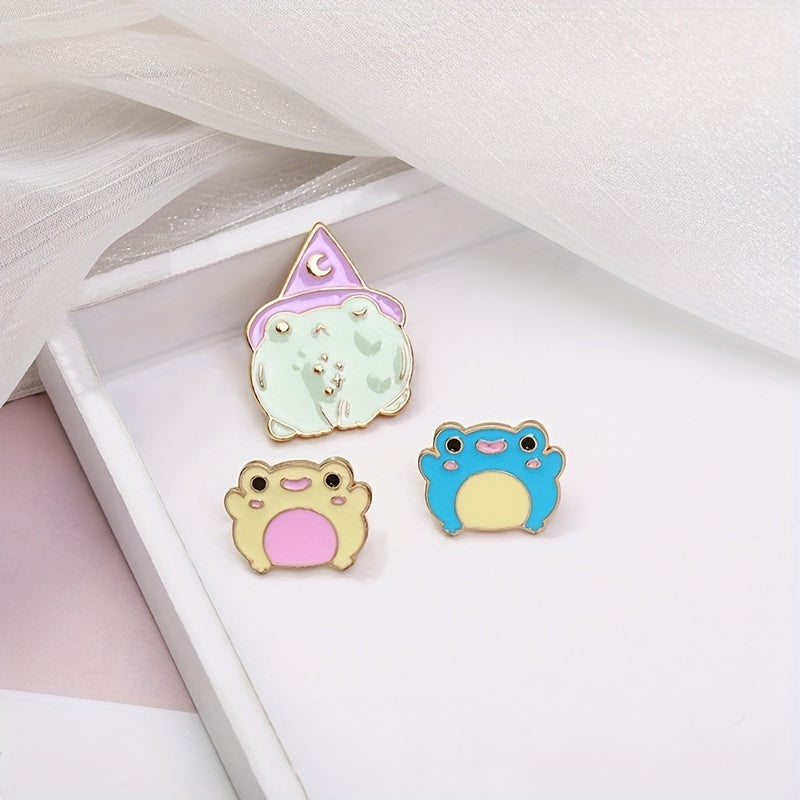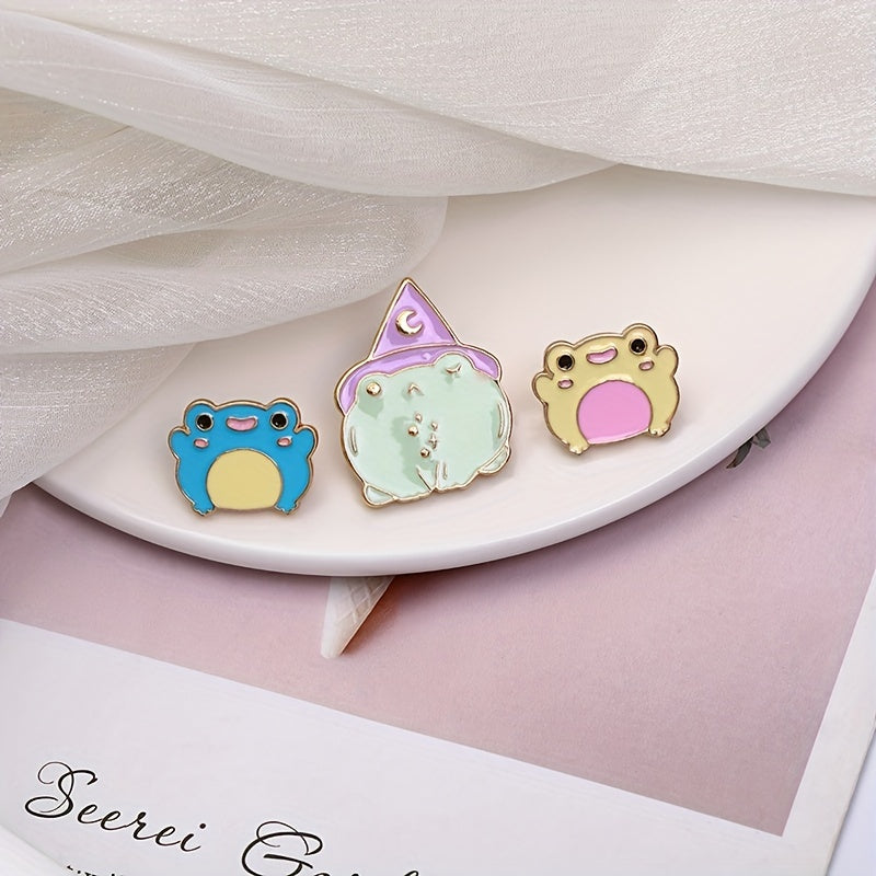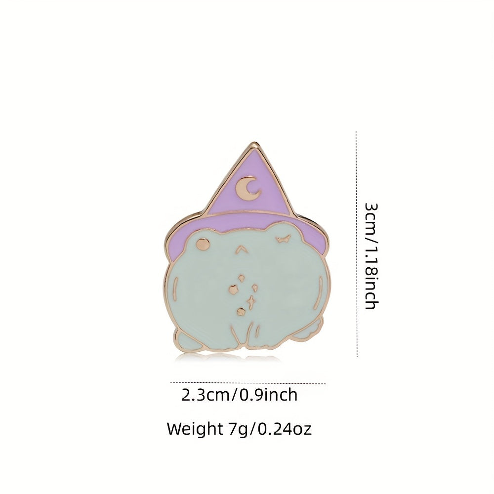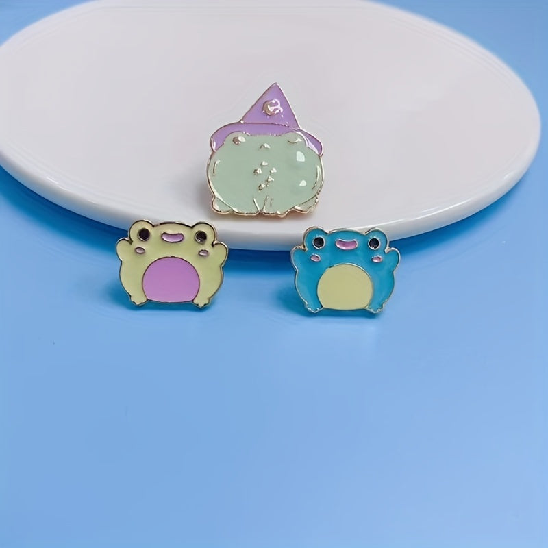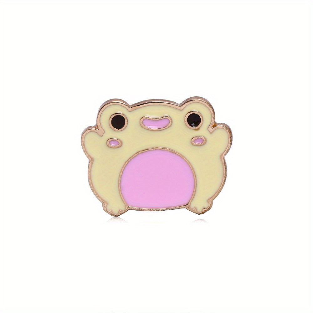 This adorable enamel cartoon frog brooch is a cute accessory to add to your clothing or school bag. It features a vibrant design that stands out.