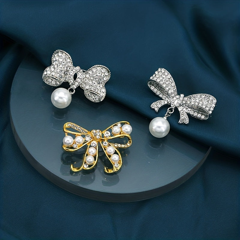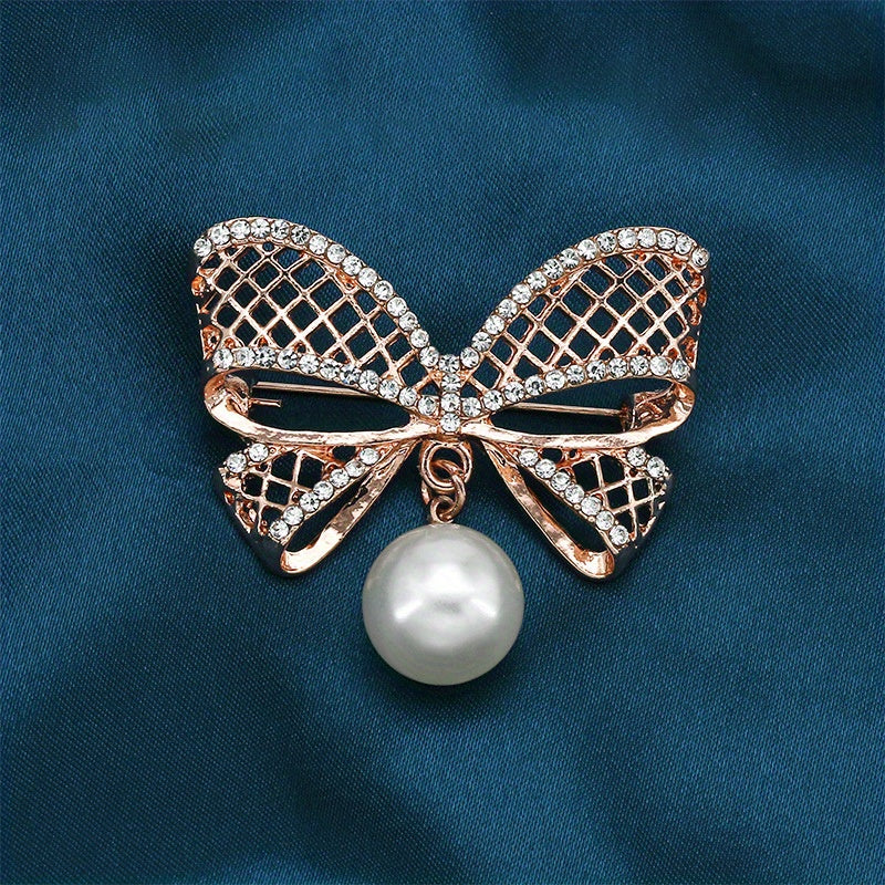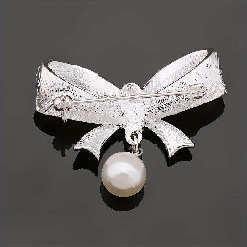 Add a touch of elegance with this faux pearl bow brooch pin. Perfect for embellishing your collar, lapel, shirt, suit, or scarf. Great for weddings, parties, or as a gift for women.