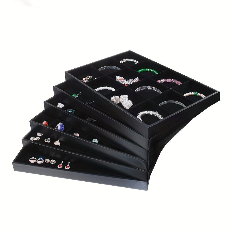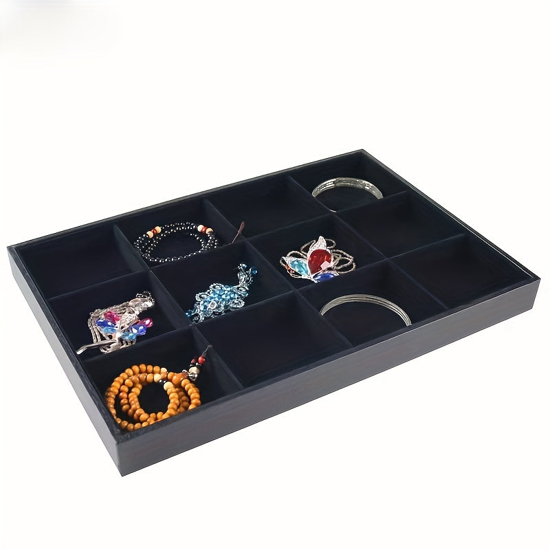 This elegant flannel jewelry tray is perfect for storing and displaying your jewelry. It features a sleek design that adds a touch of sophistication to any space.