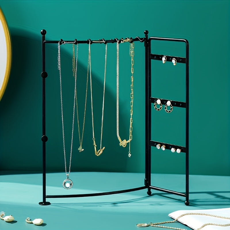 This foldable jewelry organizer stand is perfect for displaying and organizing your necklaces. Made of sturdy metal, it's durable and stylish.