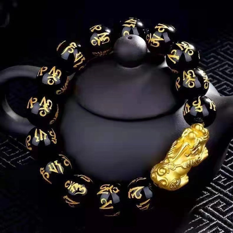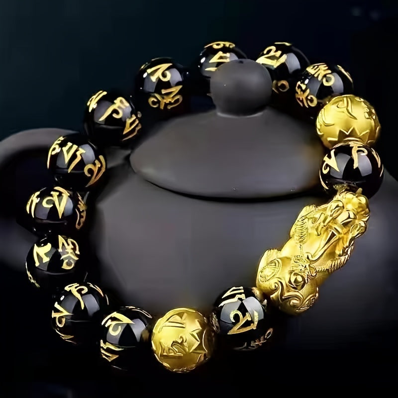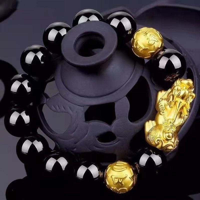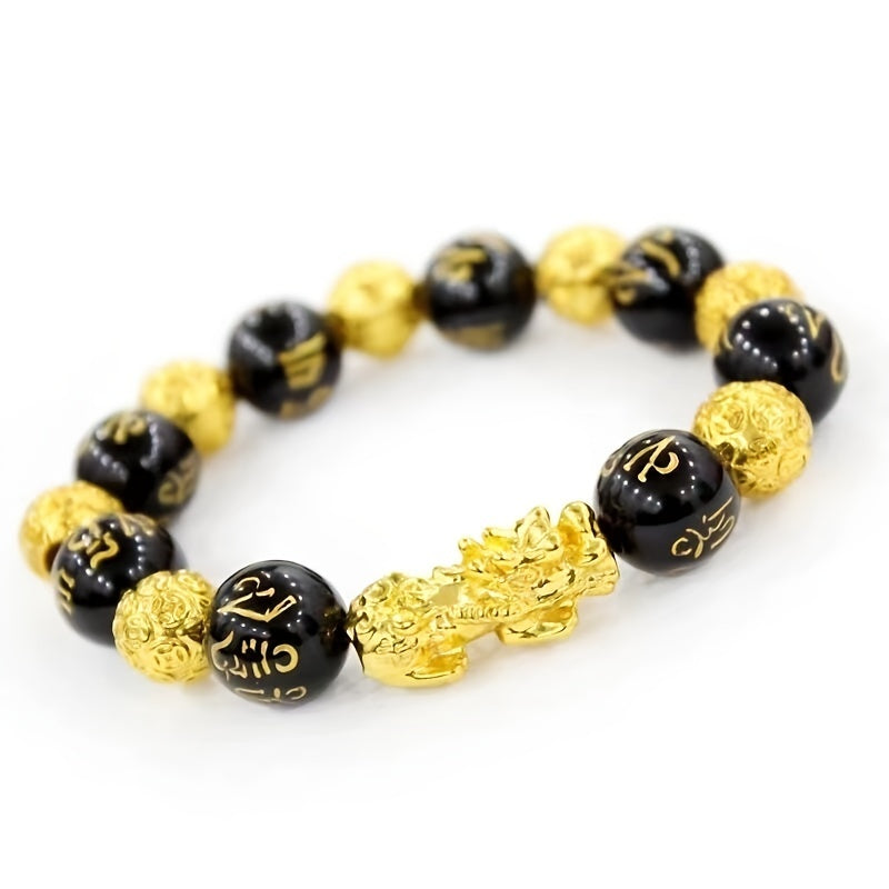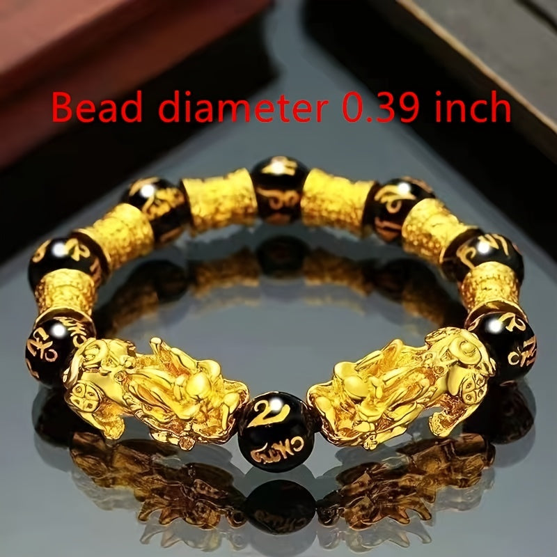This Pixiu Feng Shui bracelet brings good luck, wealth, and prosperity. The double golden yellow design is unisex and makes a great gift for anyone.