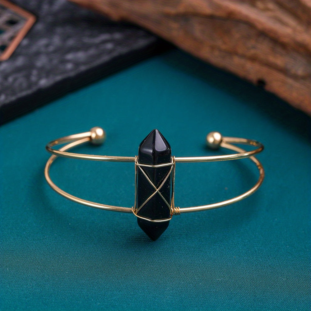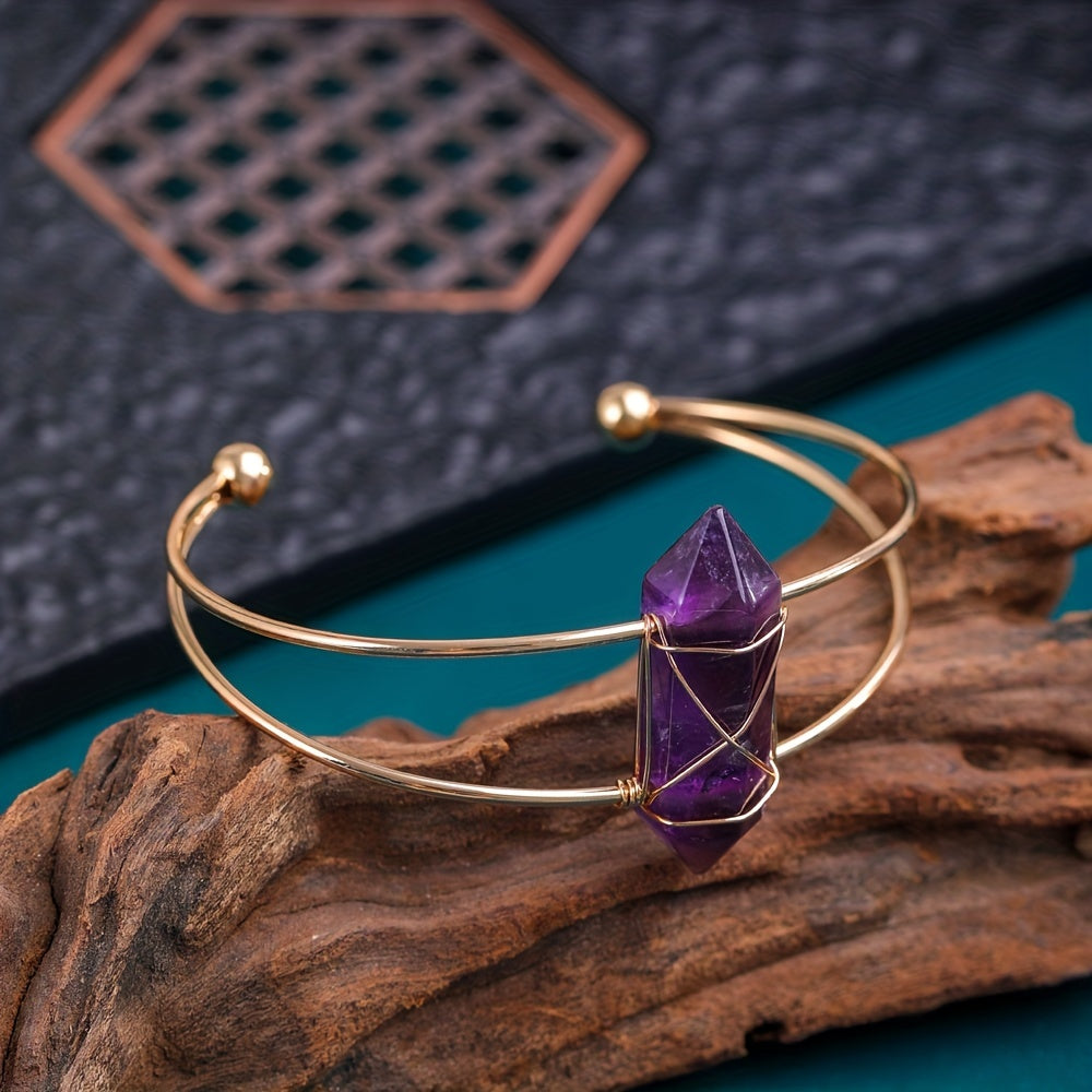 Elevate your style with this stunning golden gemstone bracelet crafted from natural gemstones. Enhance your energy flow and achieve balance with the healing properties of the crystals.