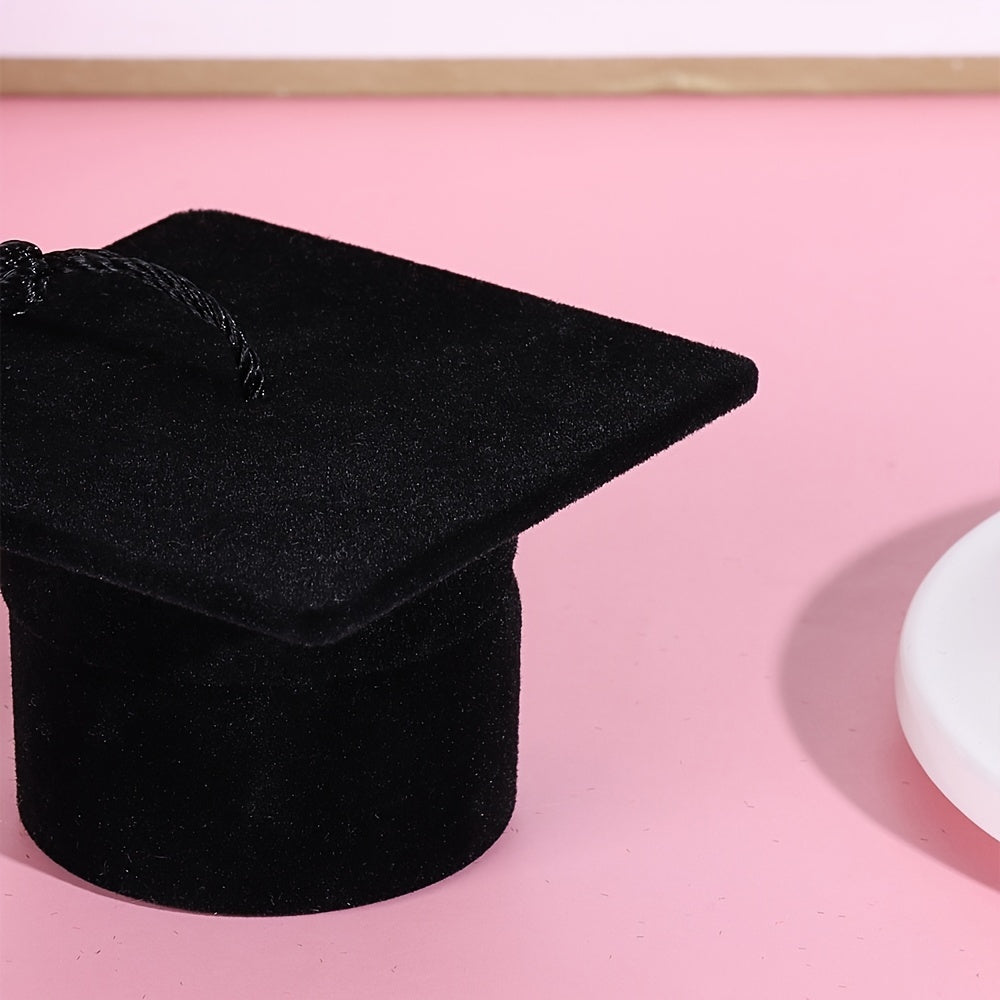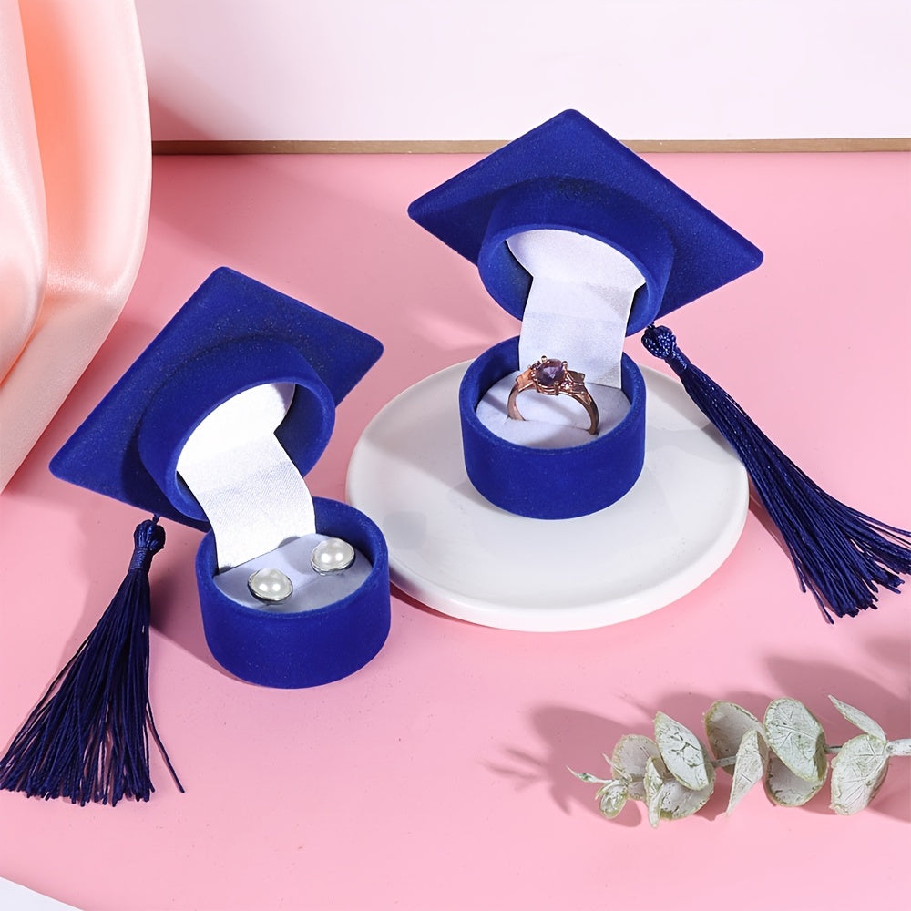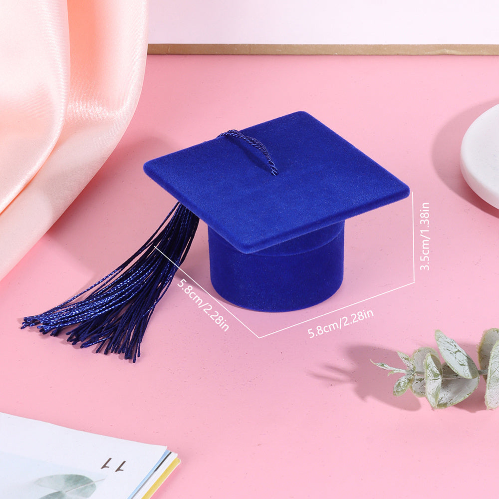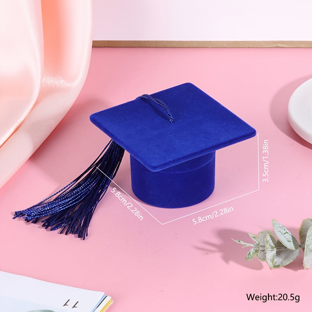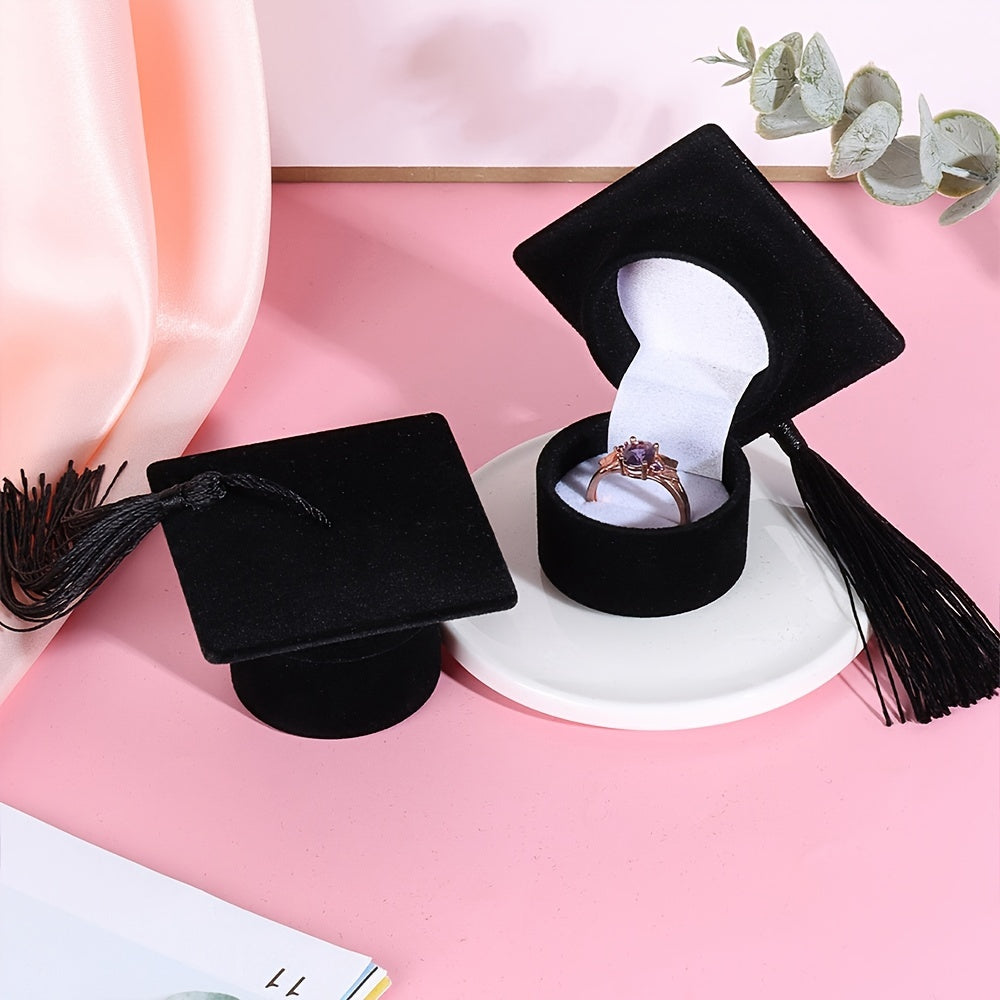 Celebrate senior year with this elegant ring box featuring flocking and tassels. Perfect for proposals or as a gift. Doctorial hat design adds a special touch.