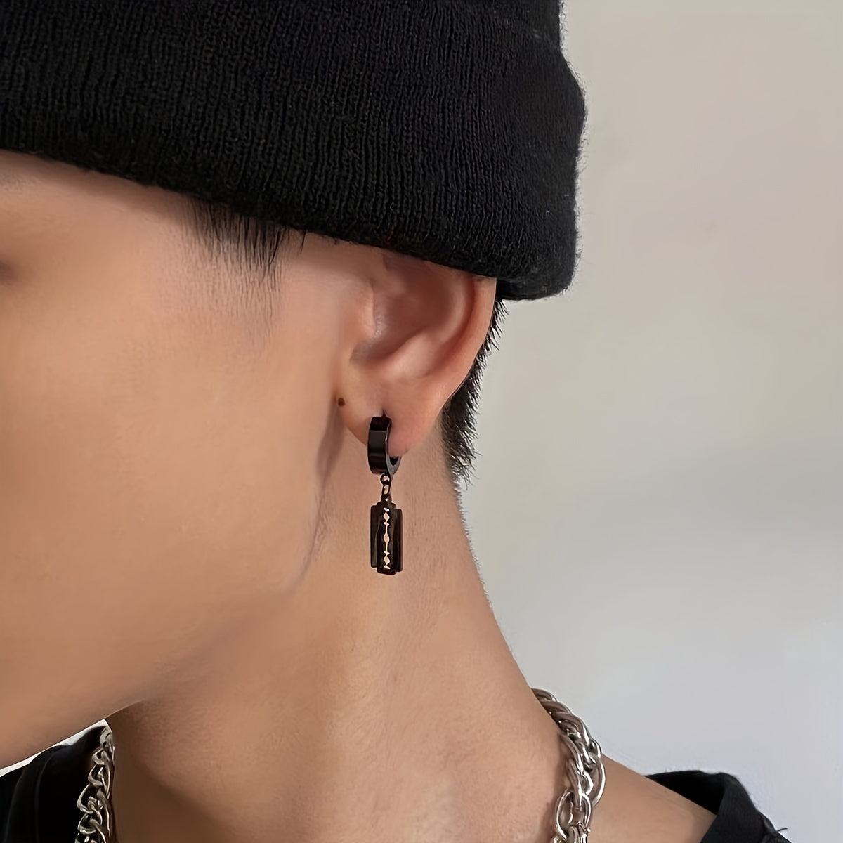 This men's hip hop style ear jewelry features a creative blade design made from titanium steel. Suitable for both men and women.