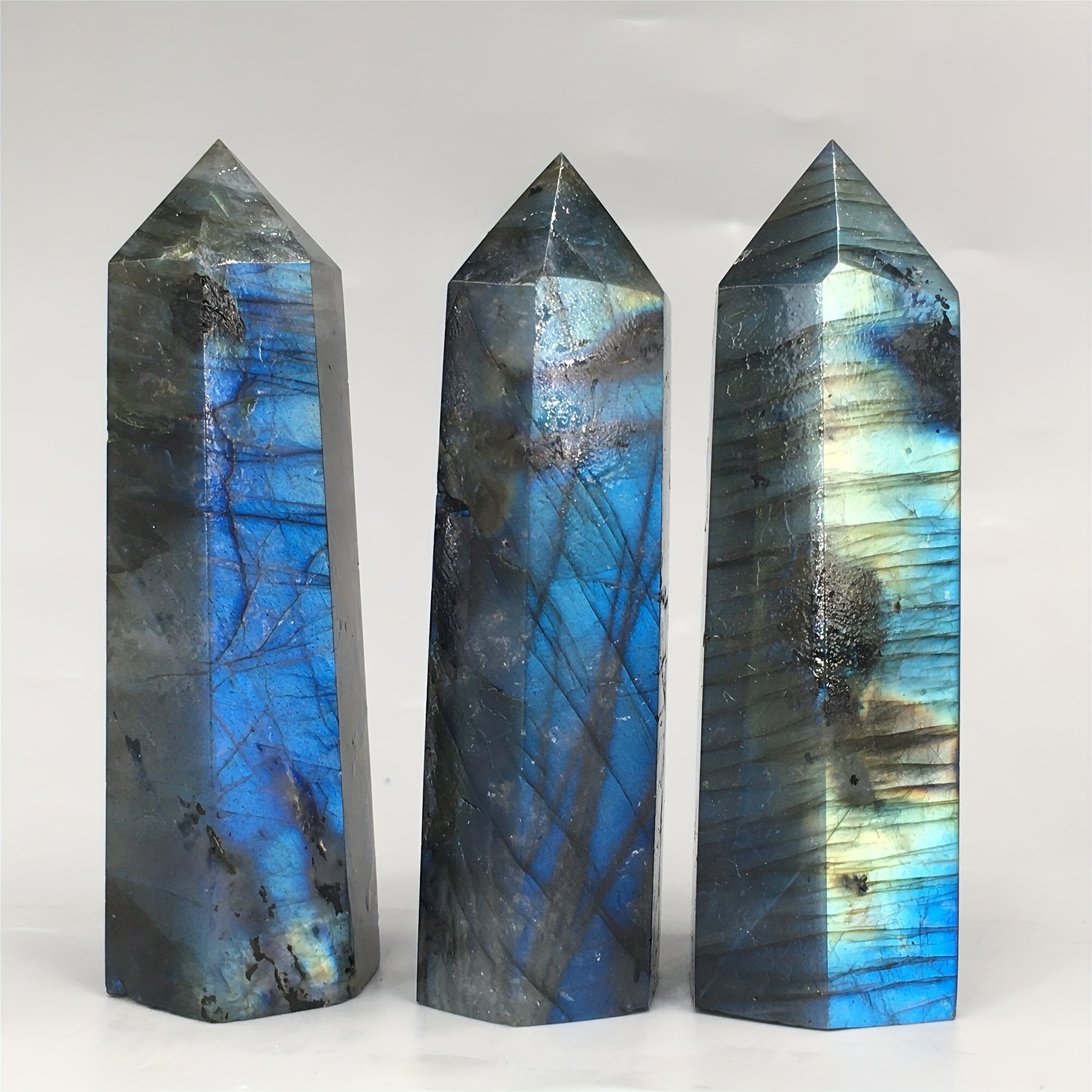 Large Labradorite Healing Crystal Wand - 6 Faceted Single Point Prism