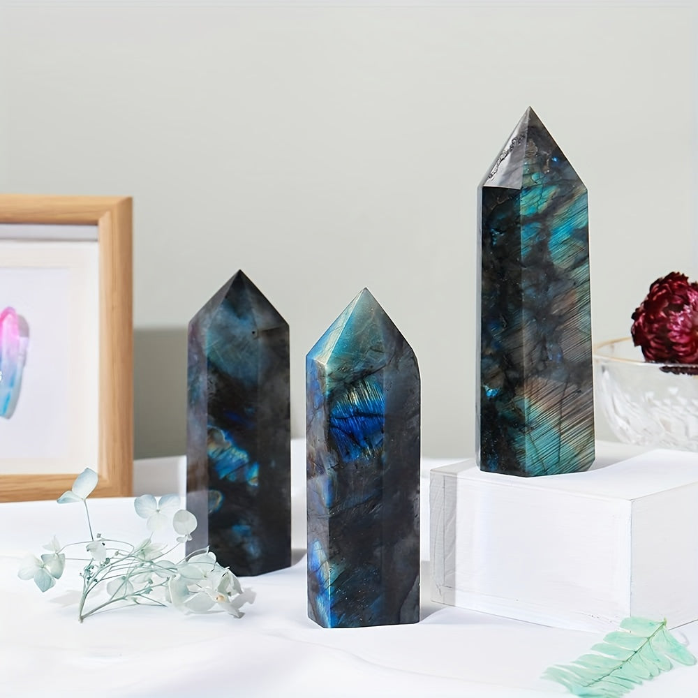 Experience the magic of Labradorite with this large healing crystal wand. Featuring 6 faceted single point prism design, this crystal is perfect for energy work and spiritual healing.