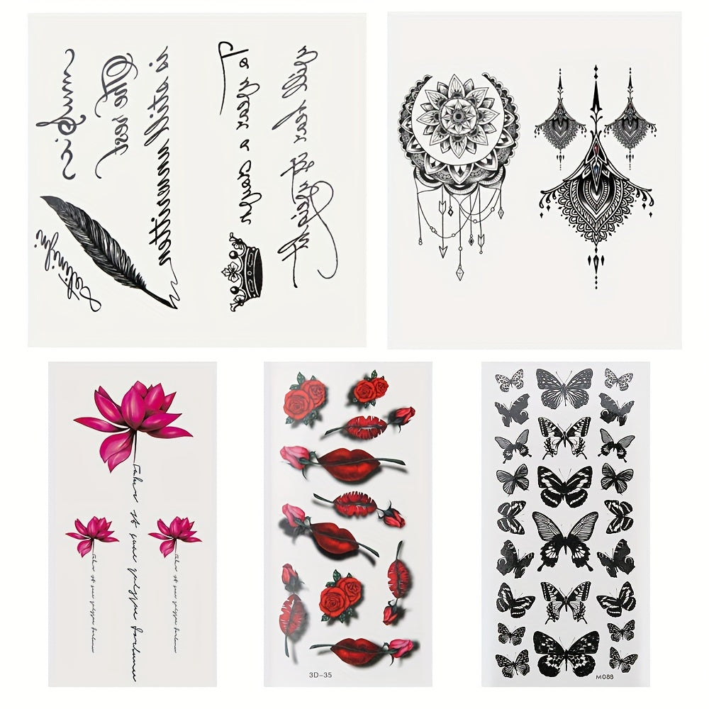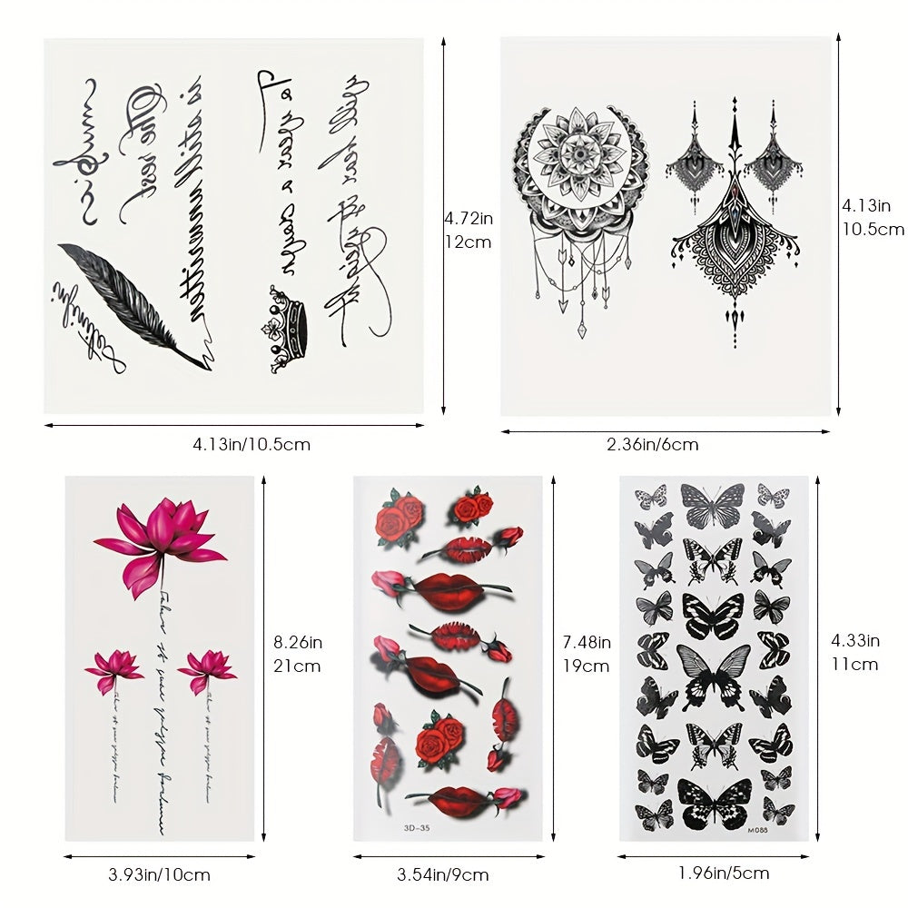 Enhance your style with these waterproof tattoo stickers featuring a letter and flower design. Suitable for both men and women.