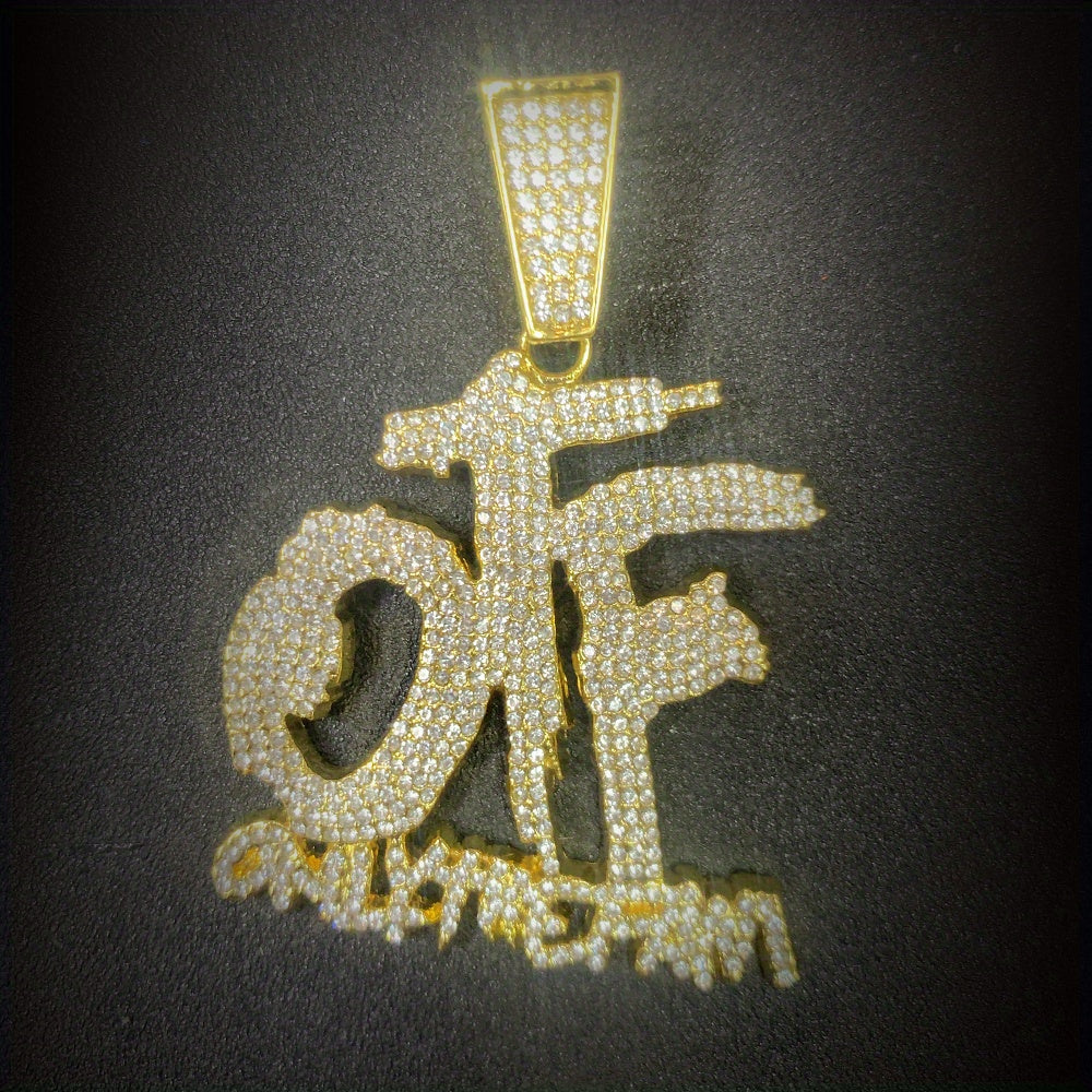 Elevate your style with this stunning men's pendant featuring a golden finish and iced charm design. Made with high-quality stainless steel and paired with a real 3 mm rope chain, this piece will add a touch of luxury to any outfit.