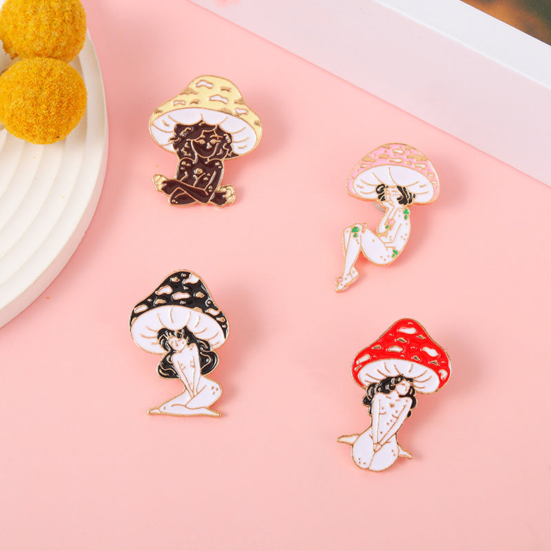Add a touch of whimsy to your outfits with this mermaid and mushroom enamel brooch that can be used as a pin, corsage, or scarf clip. Perfect for women and girls, this decoration is versatile and stylish.