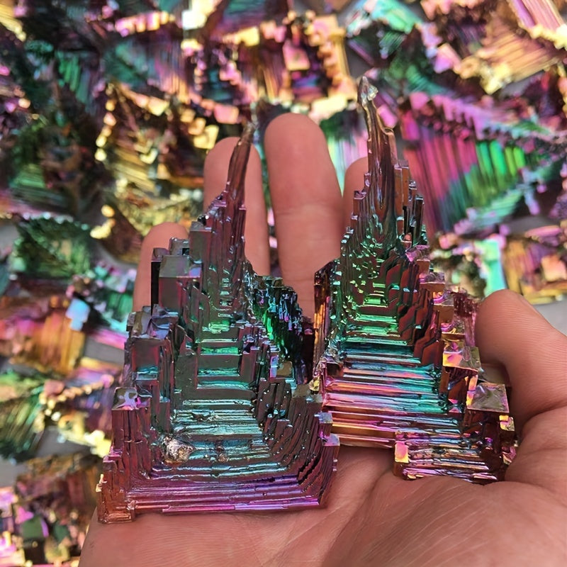 Natural Bismuth Ore Metallic Crystal Iridescent Mineral Specimen