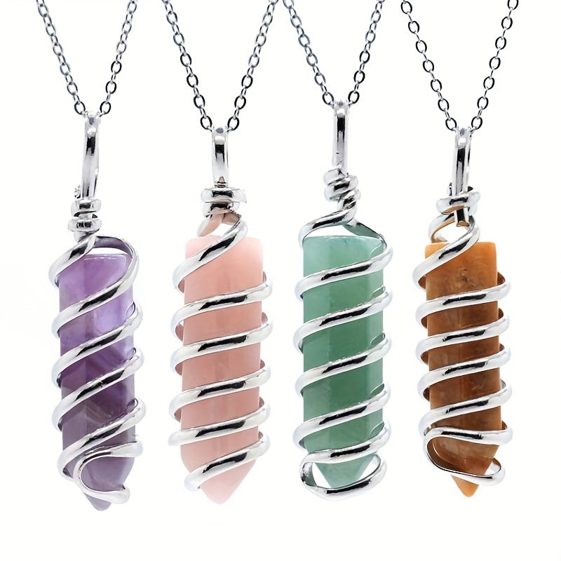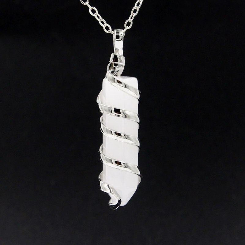 This natural crystal pendant features a single pointed hexagonal column design with a serpentine spiral wound pattern. Perfect for adding a touch of elegance to your jewelry collection.