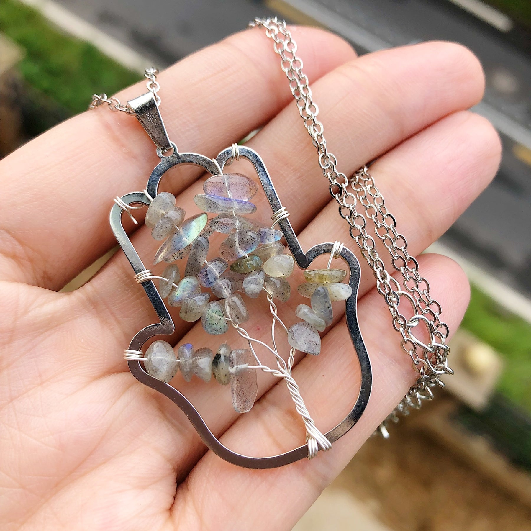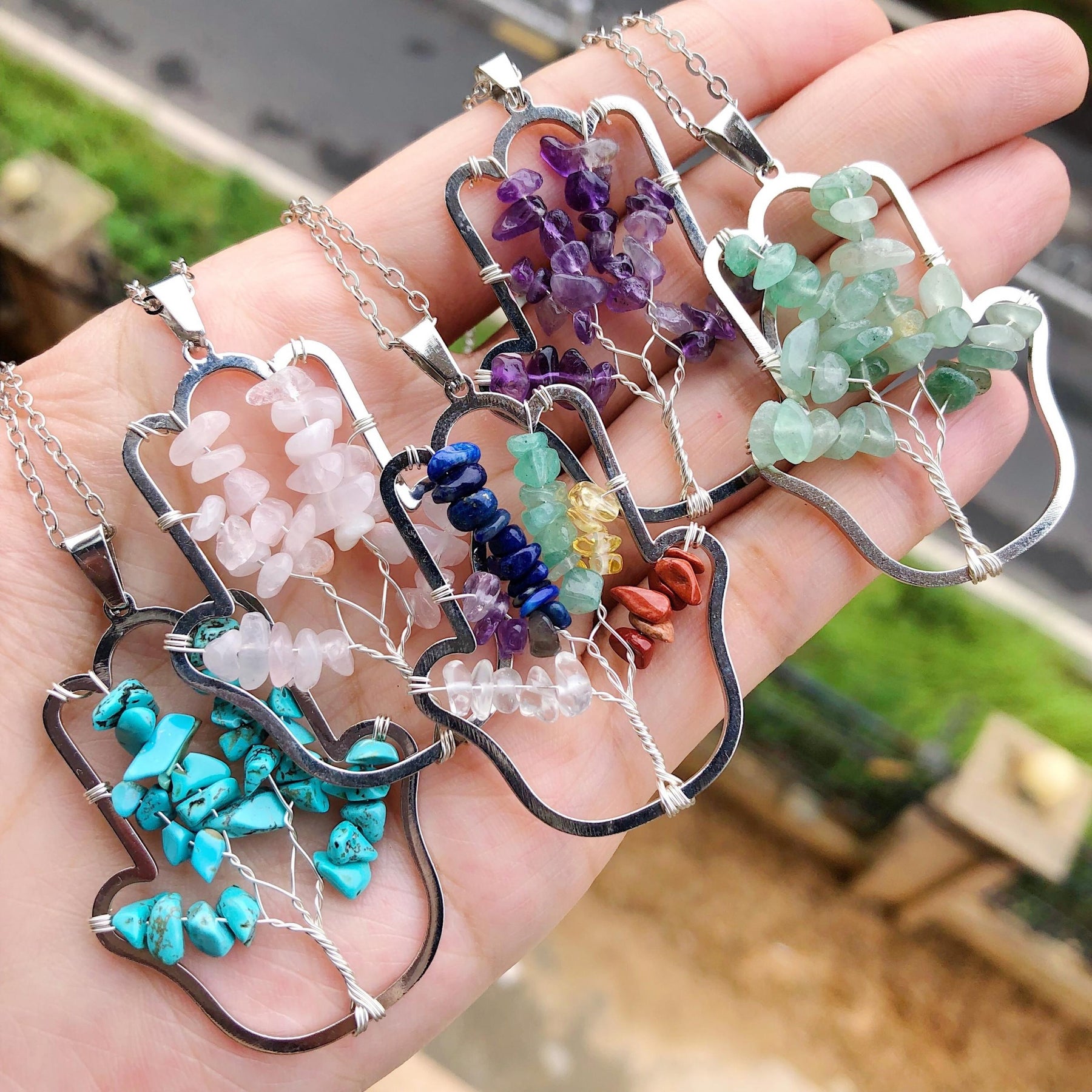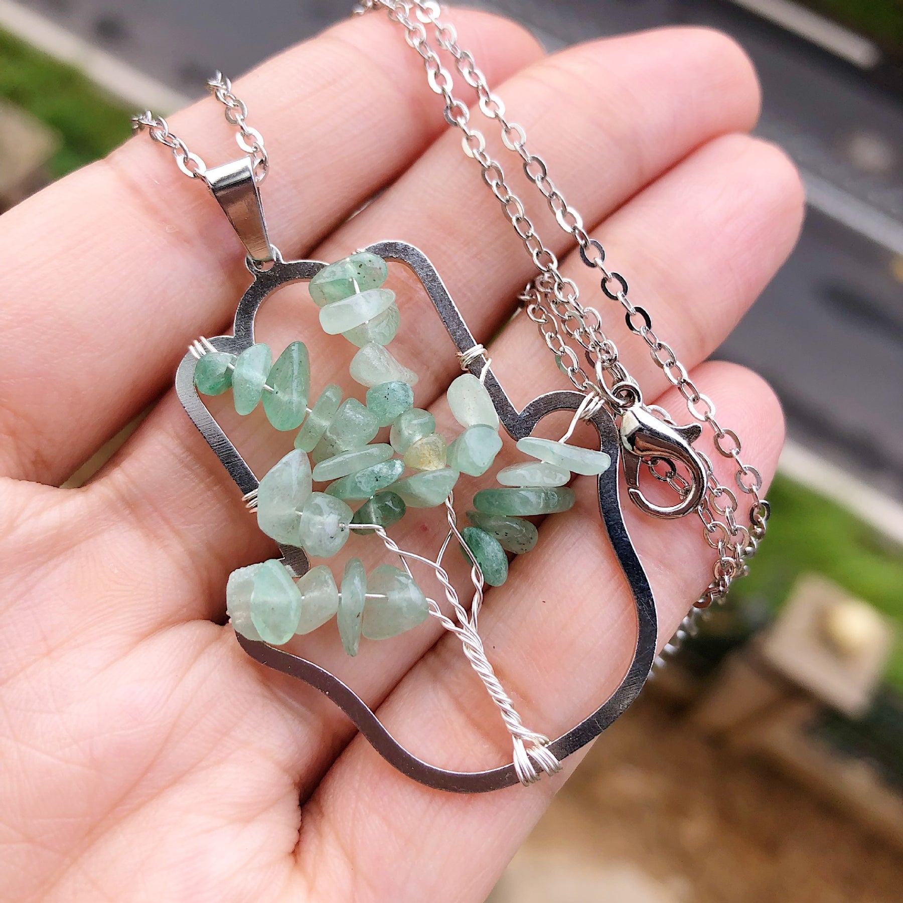 This pendant features a beautiful tree of life design crafted from natural gemstone, making it a powerful healing and Reiki amulet.