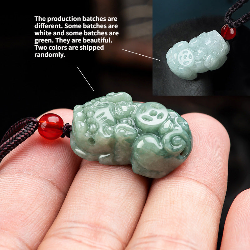 This small Pixiu jade pendant brings luck and positive energy to both men and women. Made of natural jade, it is a perfect accessory for everyday wear.