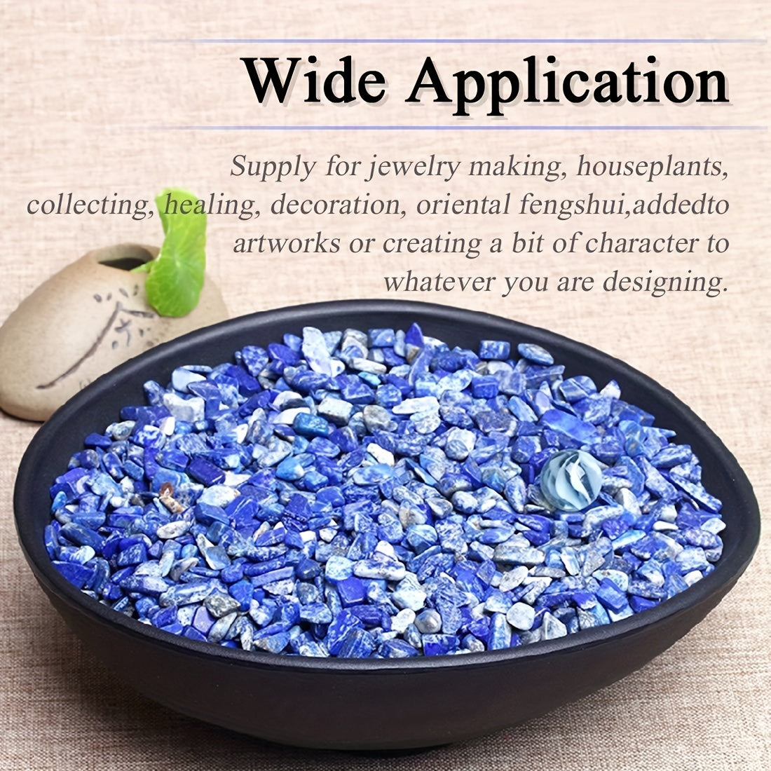 Enhance your home decor with these natural Lapis chips. Perfect for plant restoration, terrariums, and vases. Add a touch of elegance with these decorative rocks.