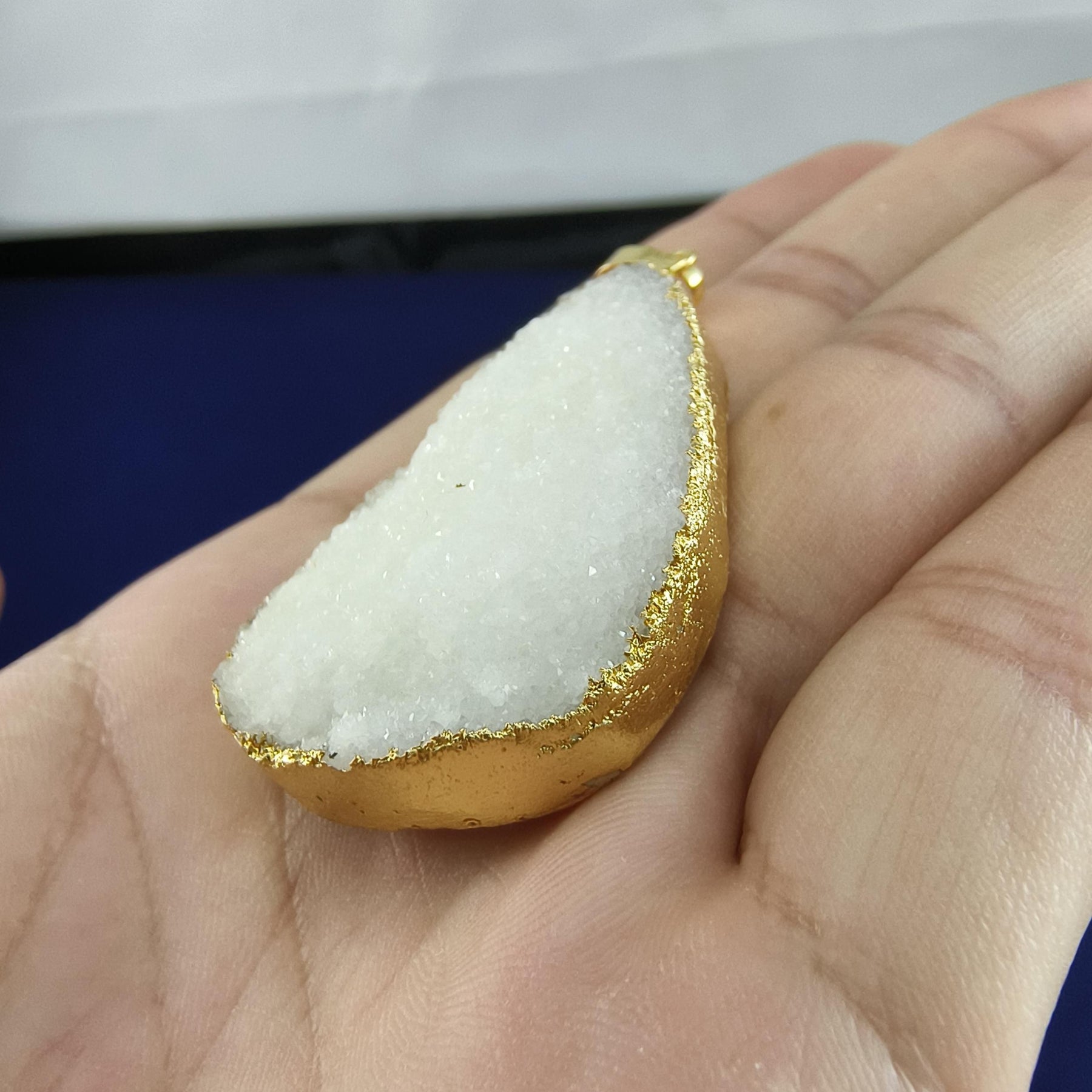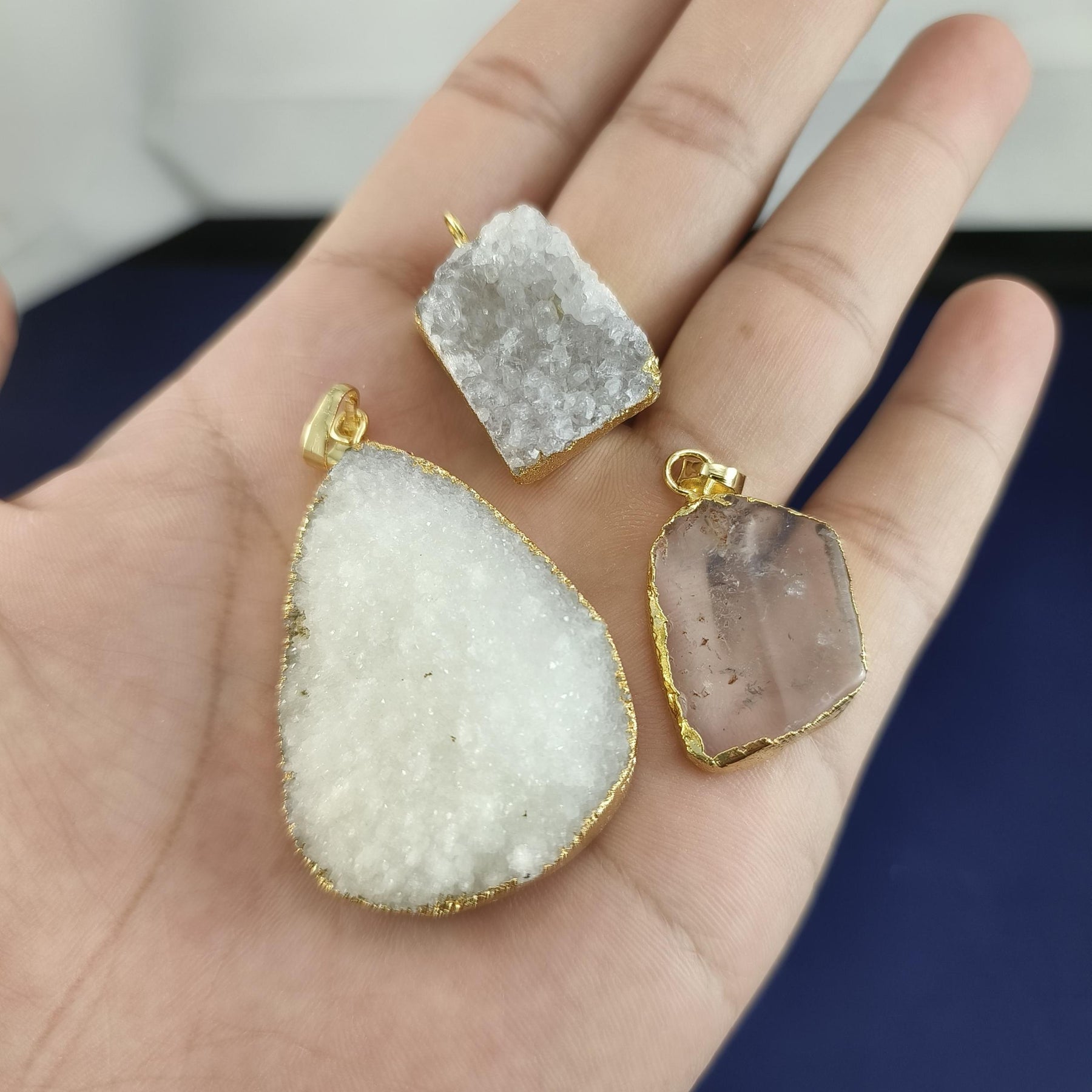 This raw stone crystal is perfect for creating your own unique pendant jewelry pieces. Add a touch of nature and elegance to your accessories with these beautiful stones.