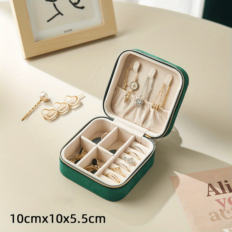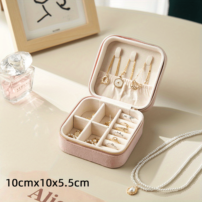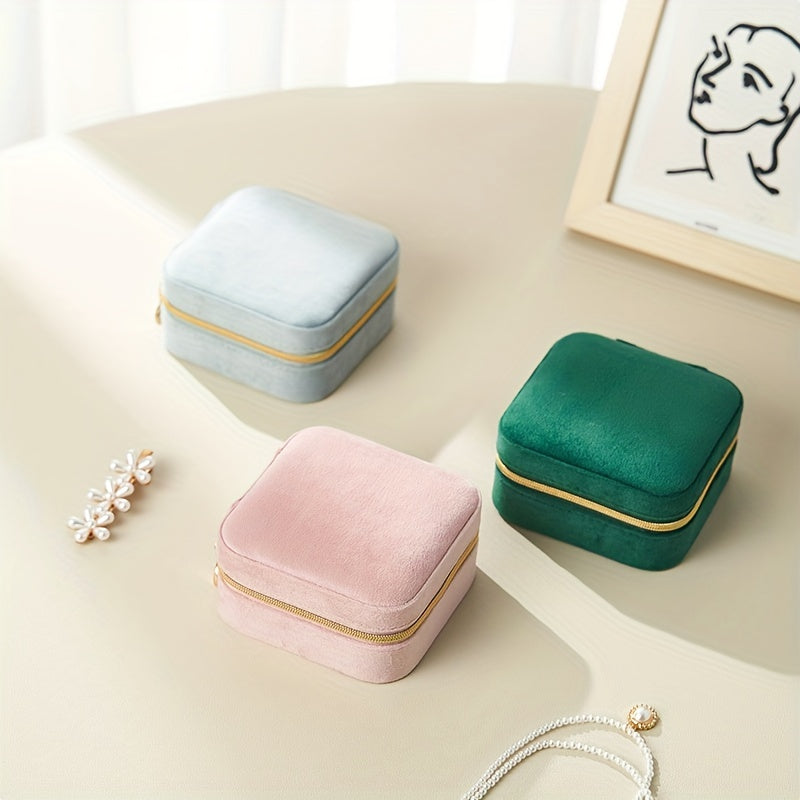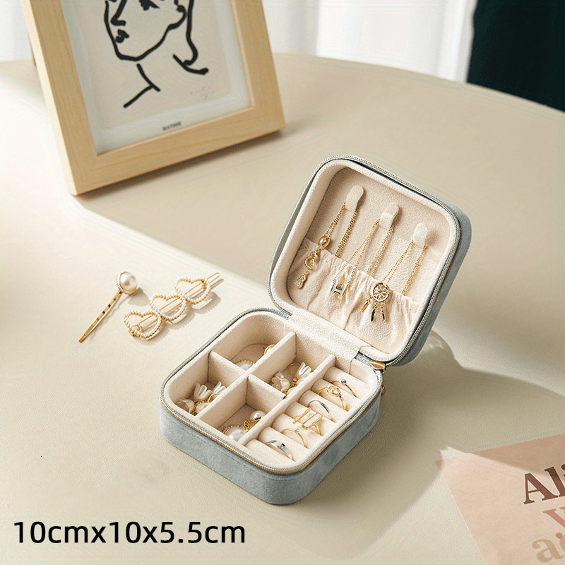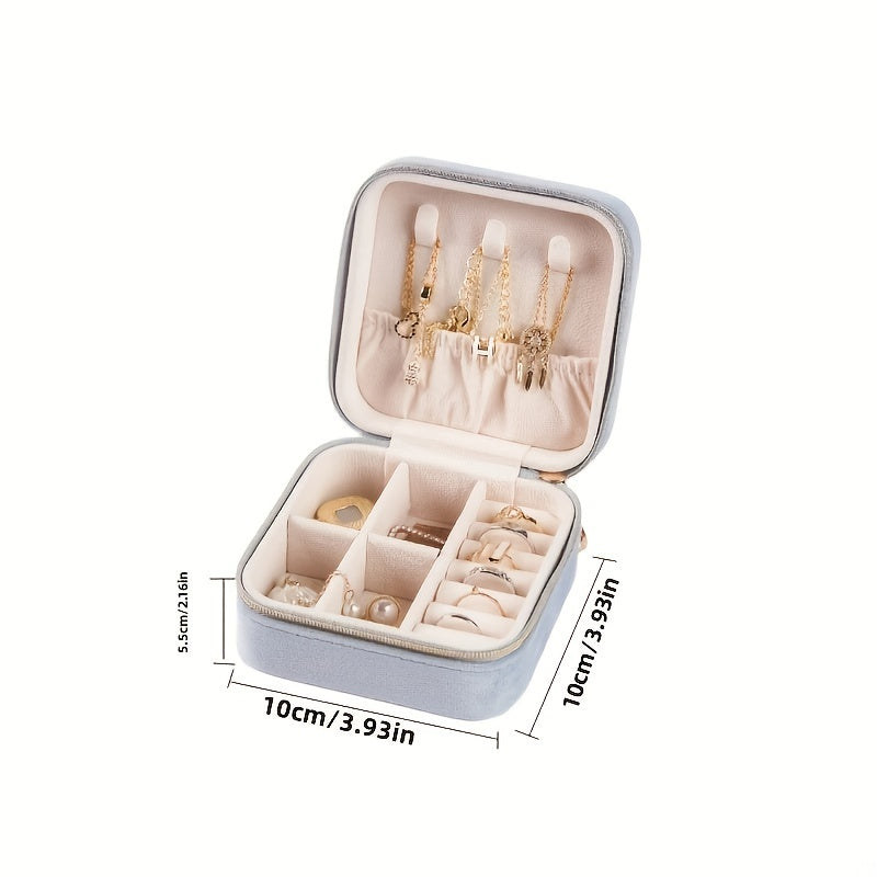 Keep your jewelry safe and organized while traveling with this plush velvet jewelry box. Perfect for storing earrings, ear studs, necklaces, and other jewelry items.
