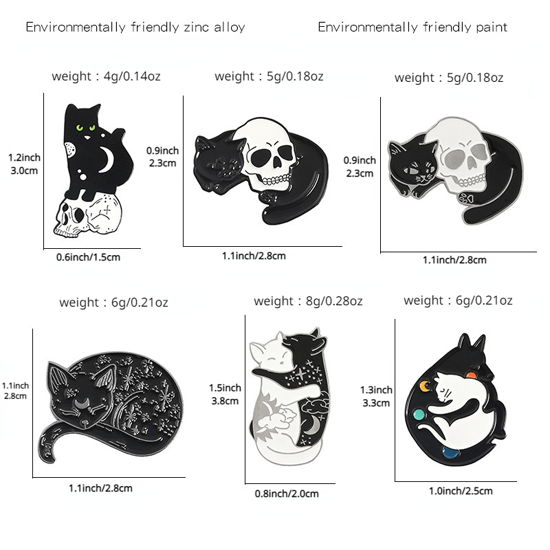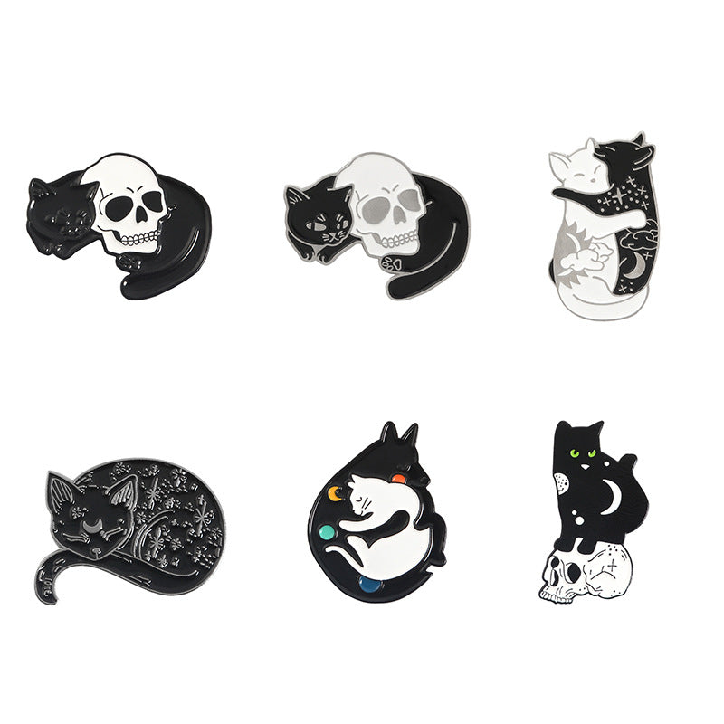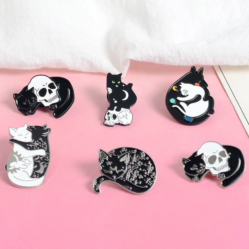 Add a unique touch to your outfit with this punk style cartoon skull cat brooch. Perfect for those who want to make a statement.