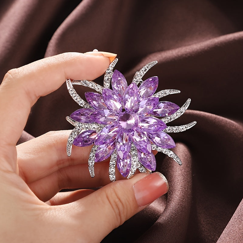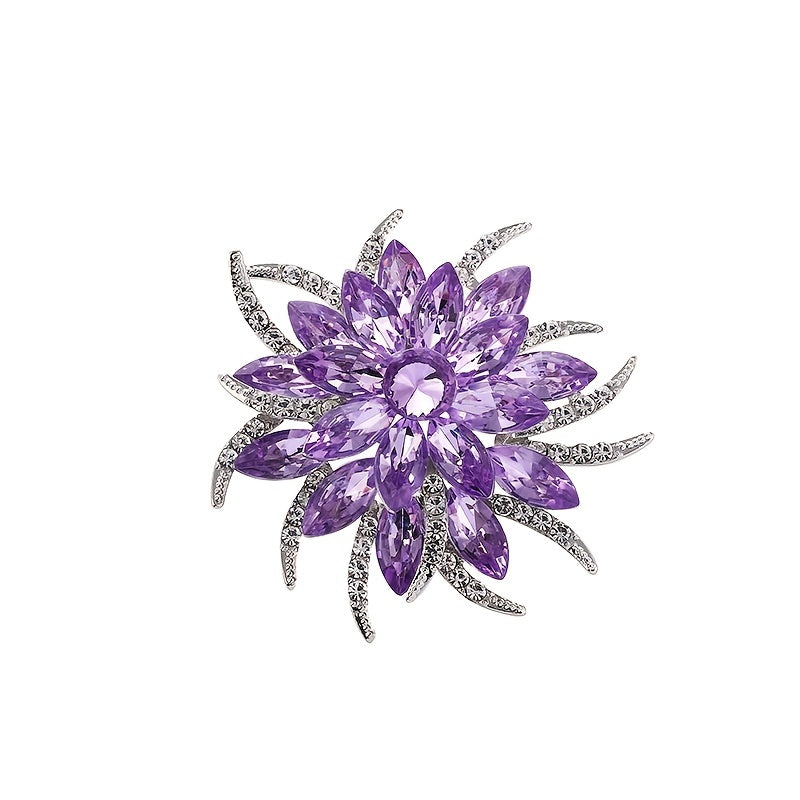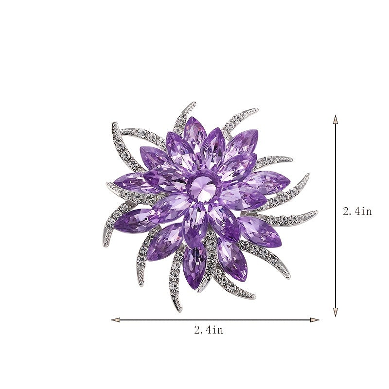 Enhance your clothing with this stunning Purple Rhinestone Crystal Bouquet Brooch. Perfect as a scarf clip or corsage pin, it adds a touch of elegance and sparkle to any outfit.