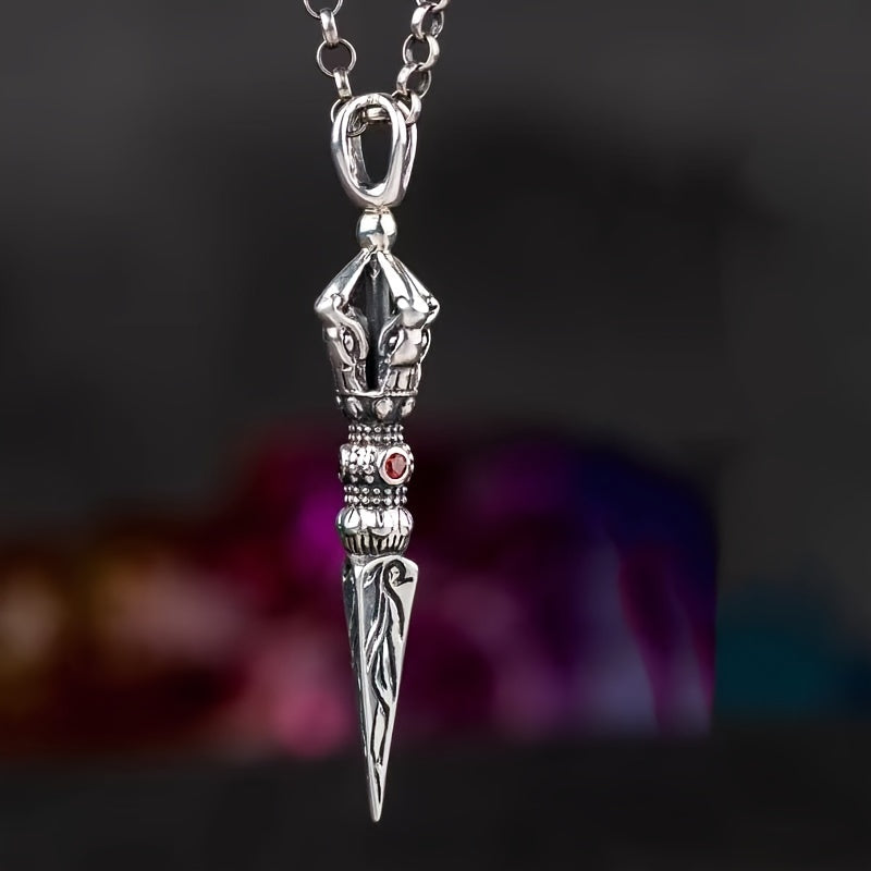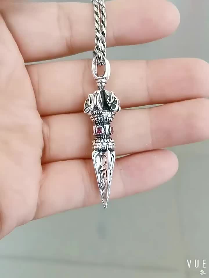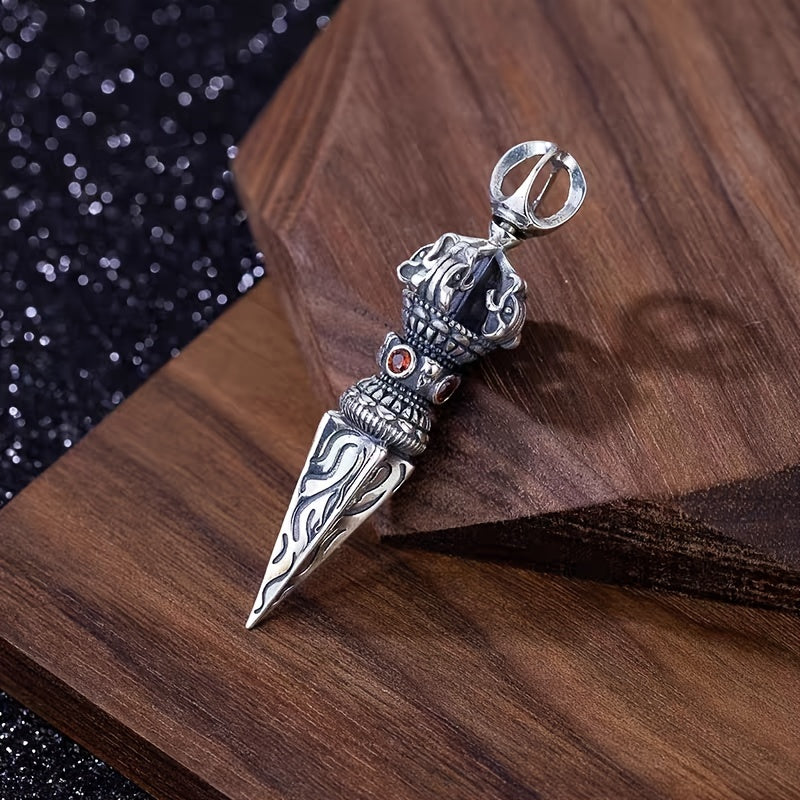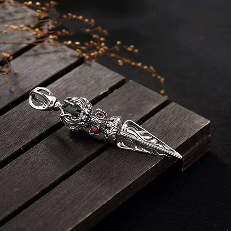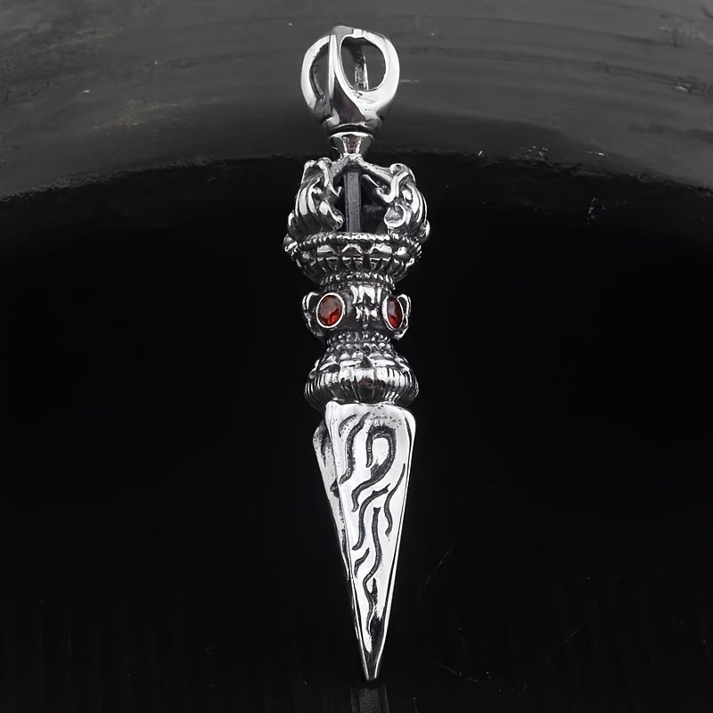 This retro silver titanium steel pendant features a vajra magic pestle design, suitable for both men and women.