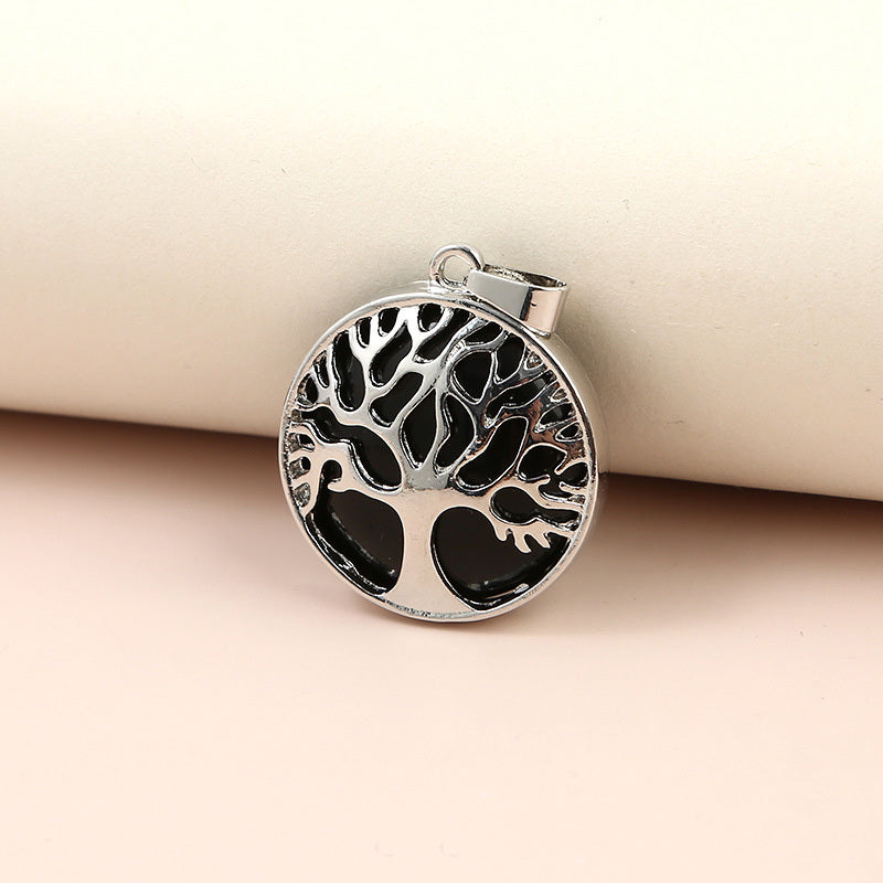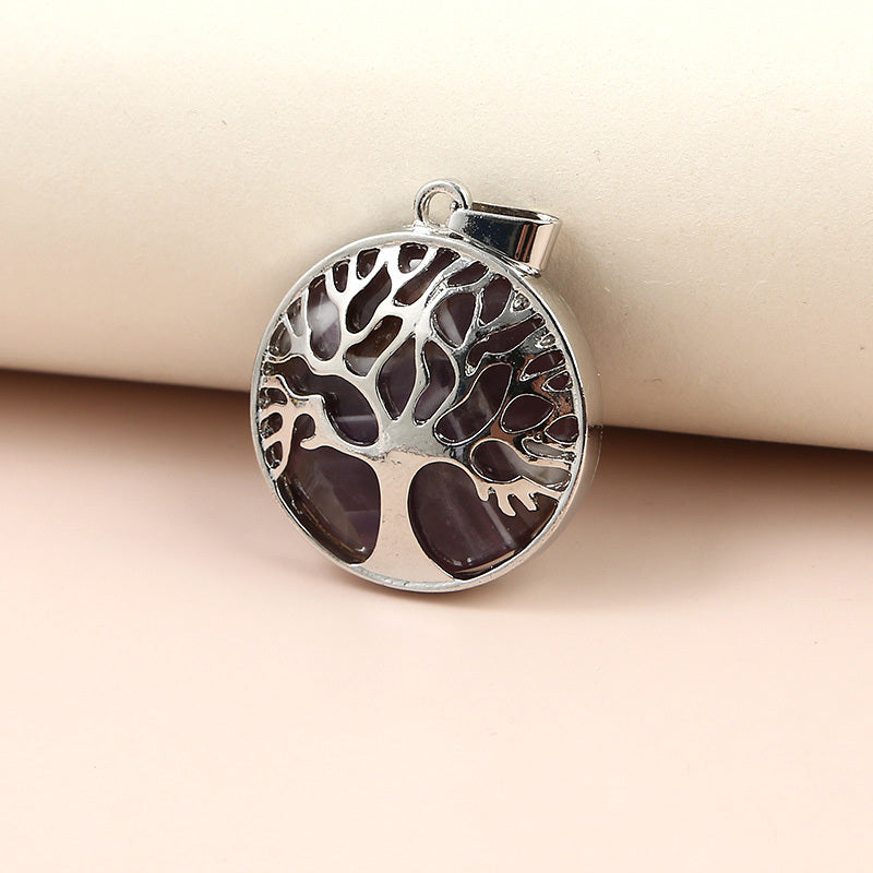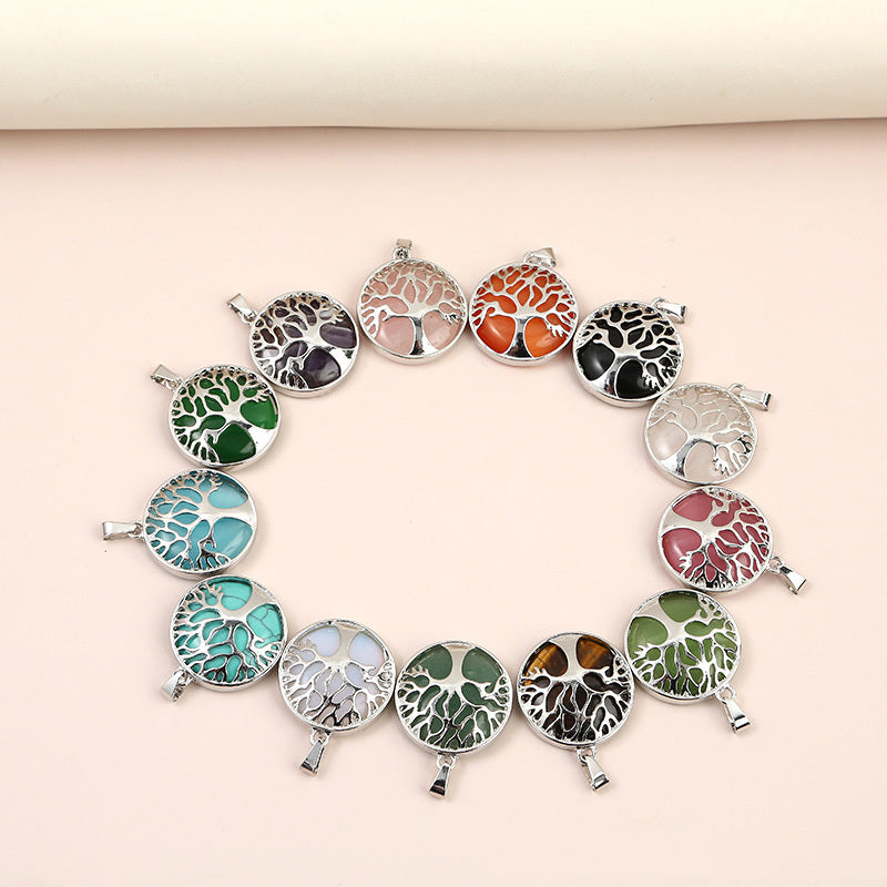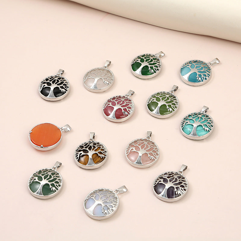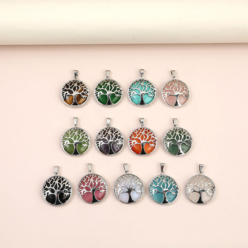 Add a touch of nature to your jewelry creations with this round-shaped charm pendant featuring a Tree of Life design made of natural stone. Perfect for crafting unique necklaces and bracelets.