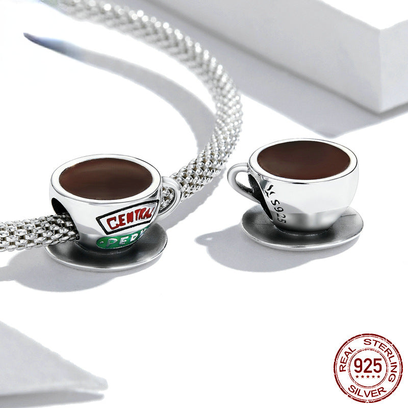 Add a touch of elegance to your jewelry creations with these S925 sterling silver coffee cup beads. Perfect for crafting bracelets or necklaces inspired by afternoon tea.