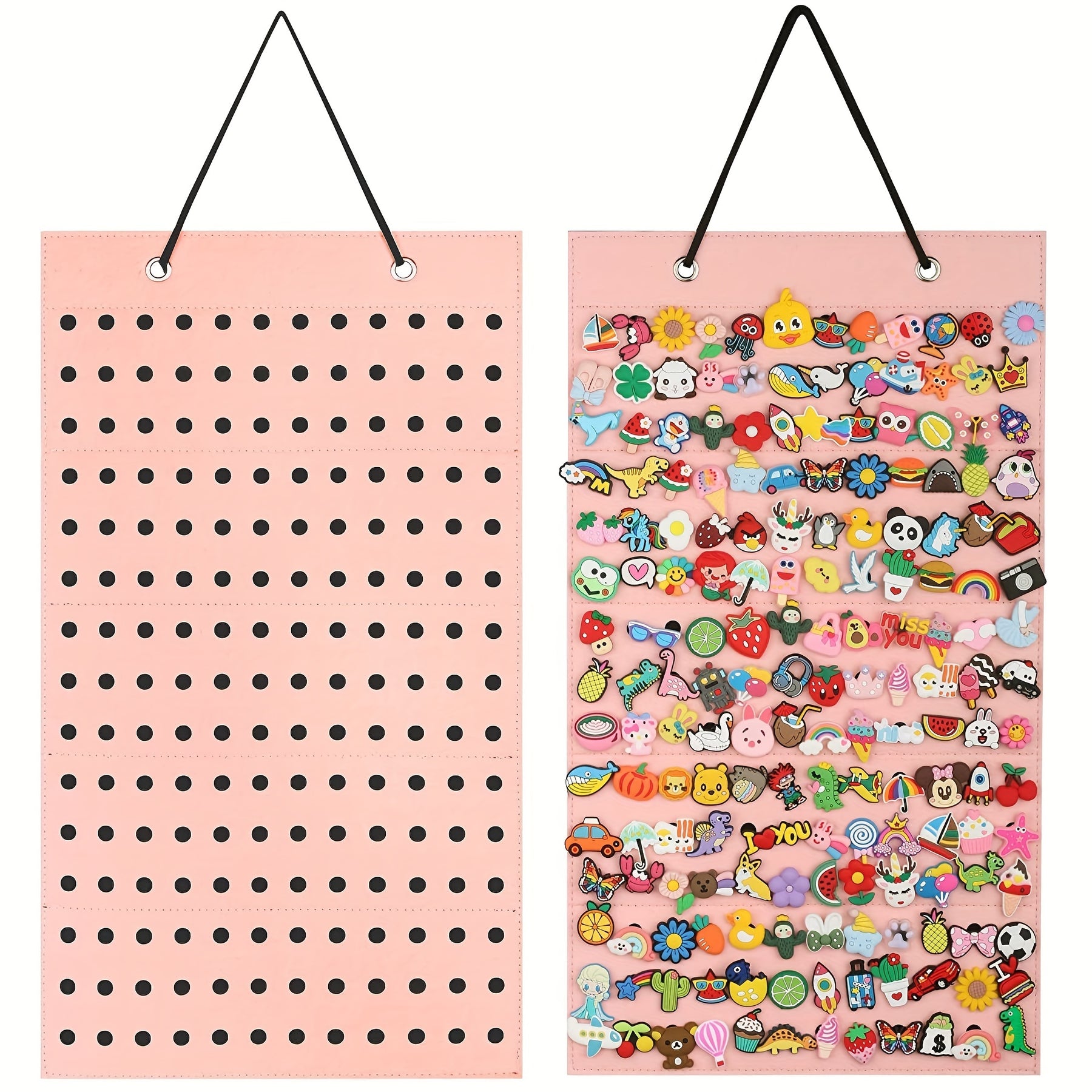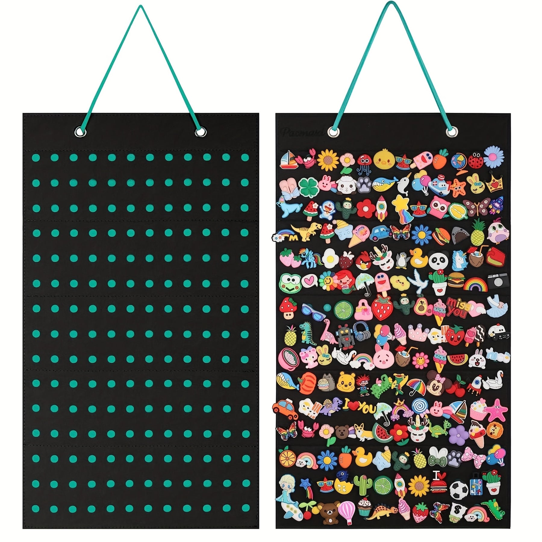 Efficiently store and organize your shoe charms with this hanging organizer featuring 150 holes. Keep your collection neat and easily accessible.