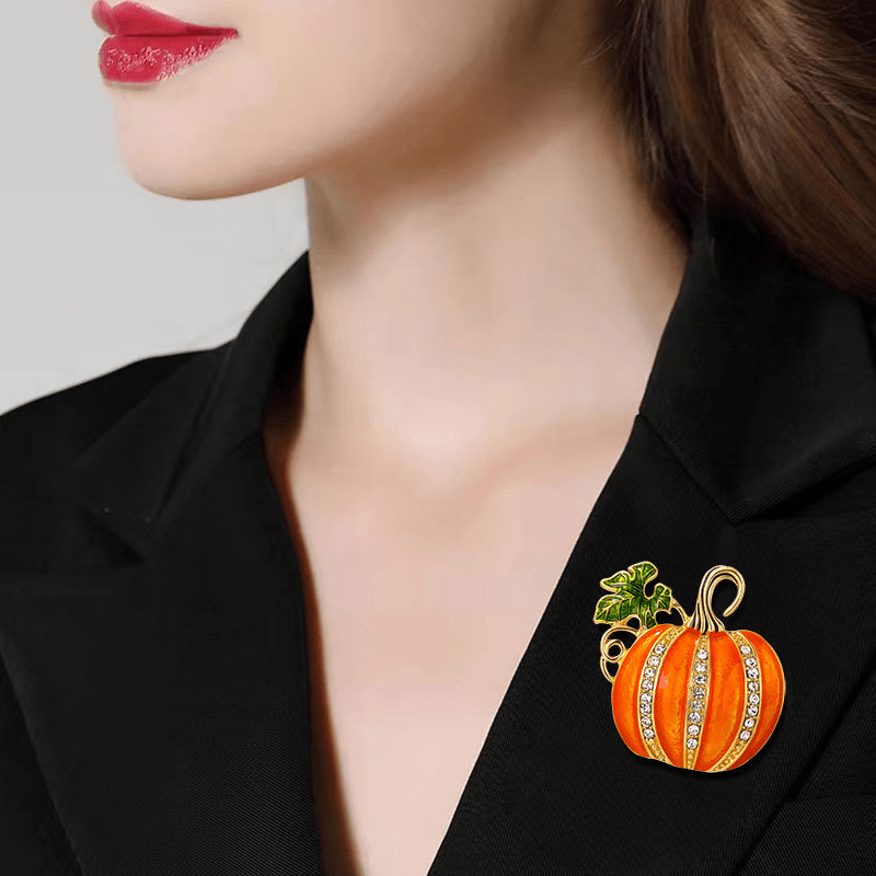 Add some sparkle to your outfits with this Halloween pumpkin rhinestone brooch pin. Perfect for clothing, backpacks, and accessories.