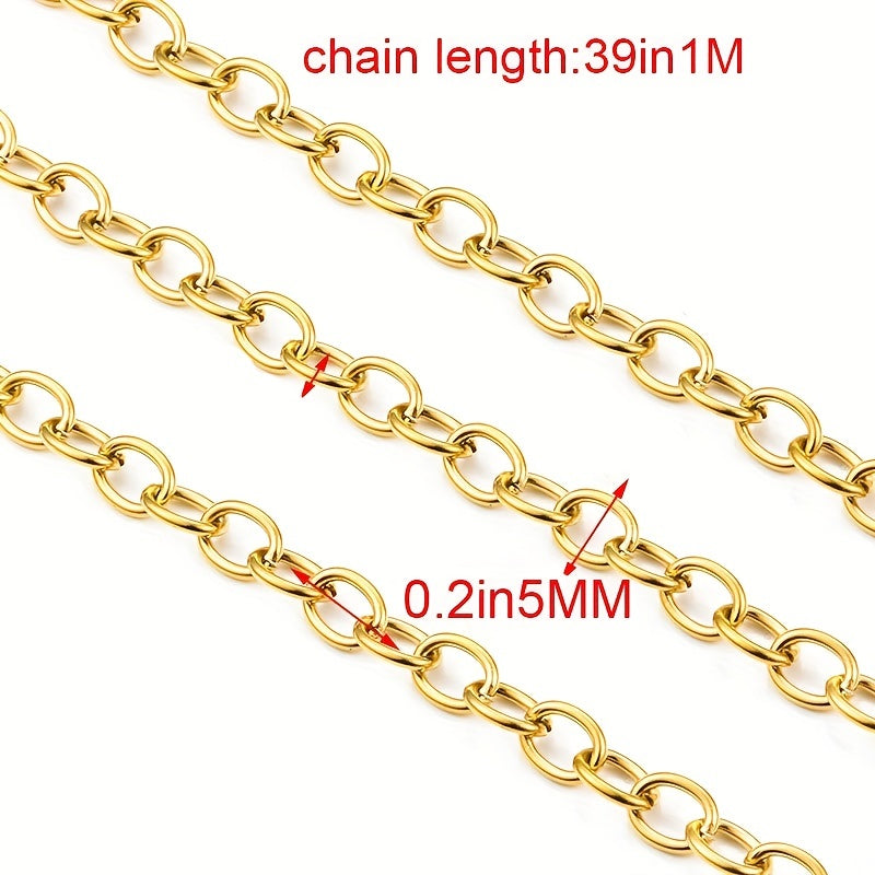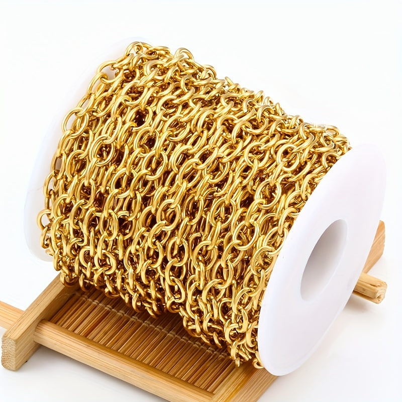 Add a touch of personality with this hip hop style stainless steel golden oval chain. Perfect for creating your own unique accessories.