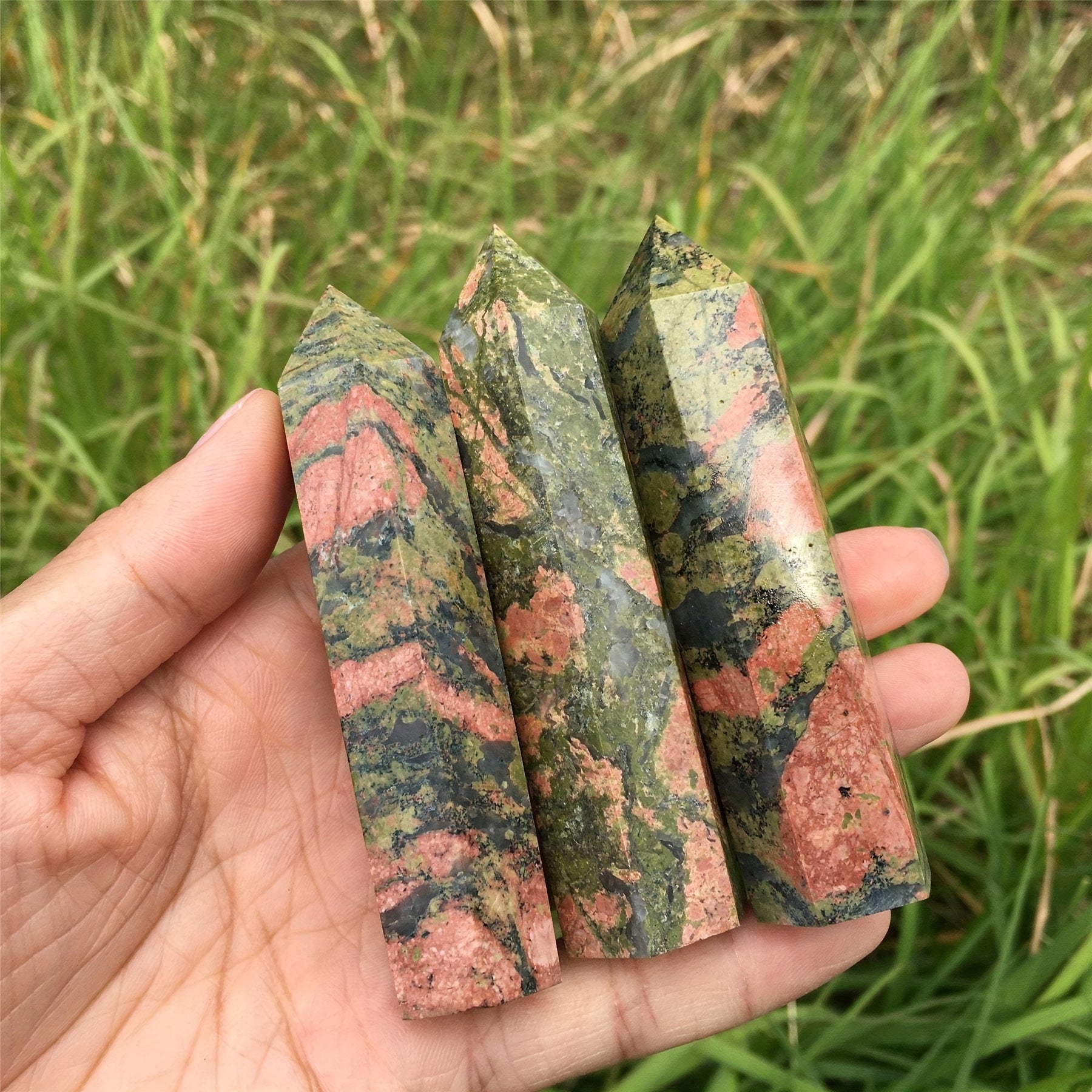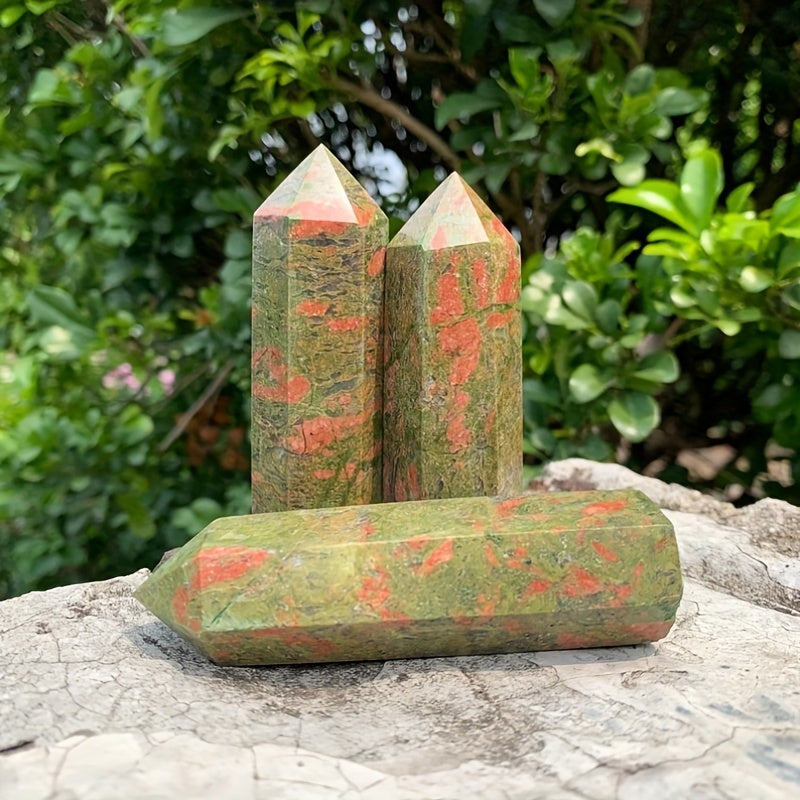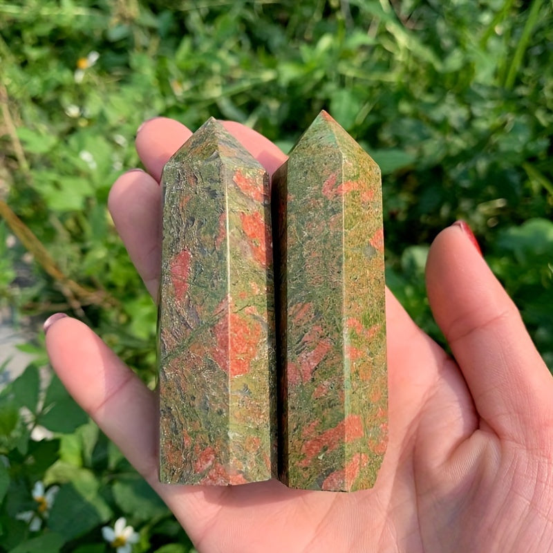 Embrace the healing energy of this natural Unakite obelisk crystal tower, a perfect magic wand for spiritual practices and mineral therapy.