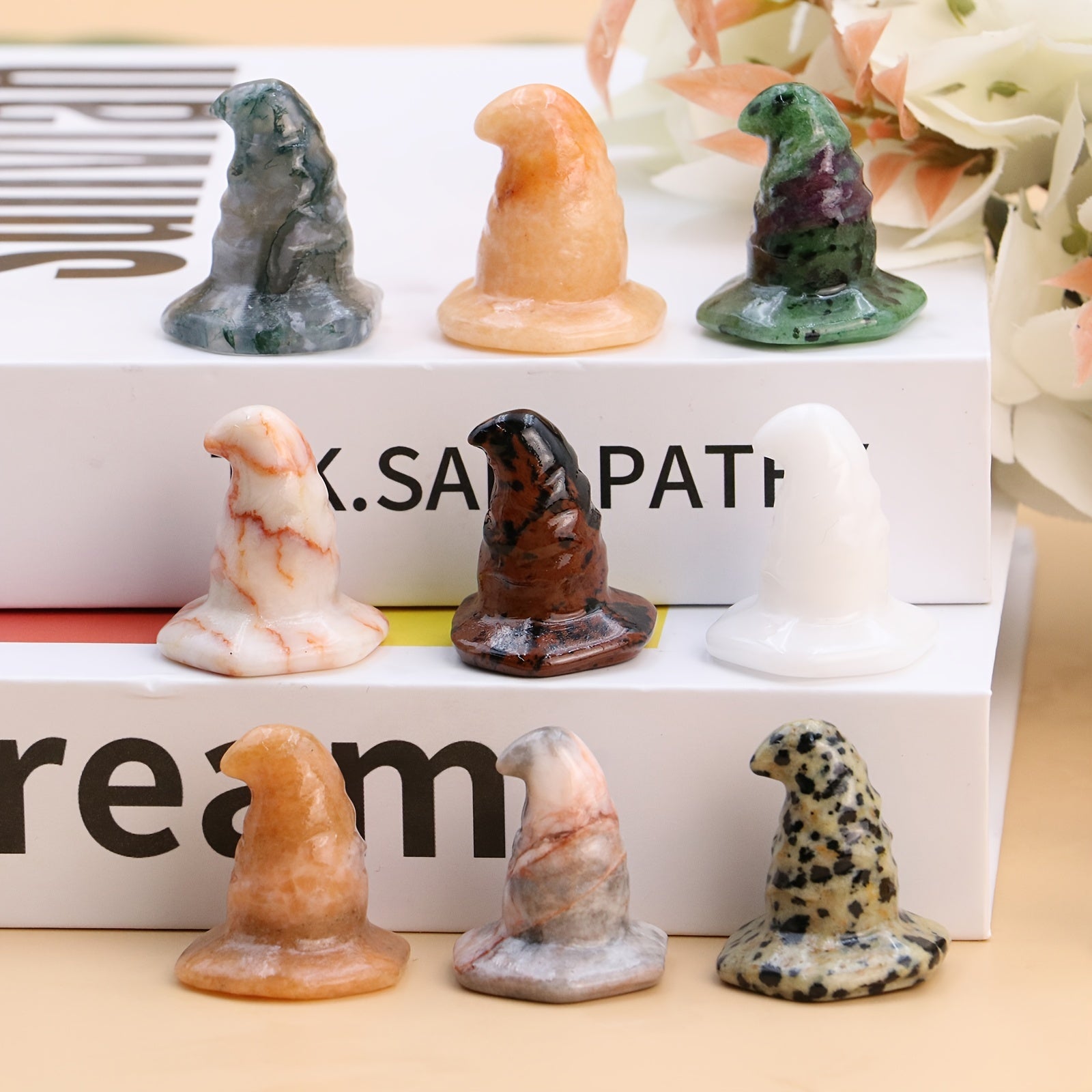 This Wizard Hat Crystal Statue is a creative gift perfect for room decor. It is intricately carved and ideal for Reiki healing. The quartz material adds a touch of elegance to any space.