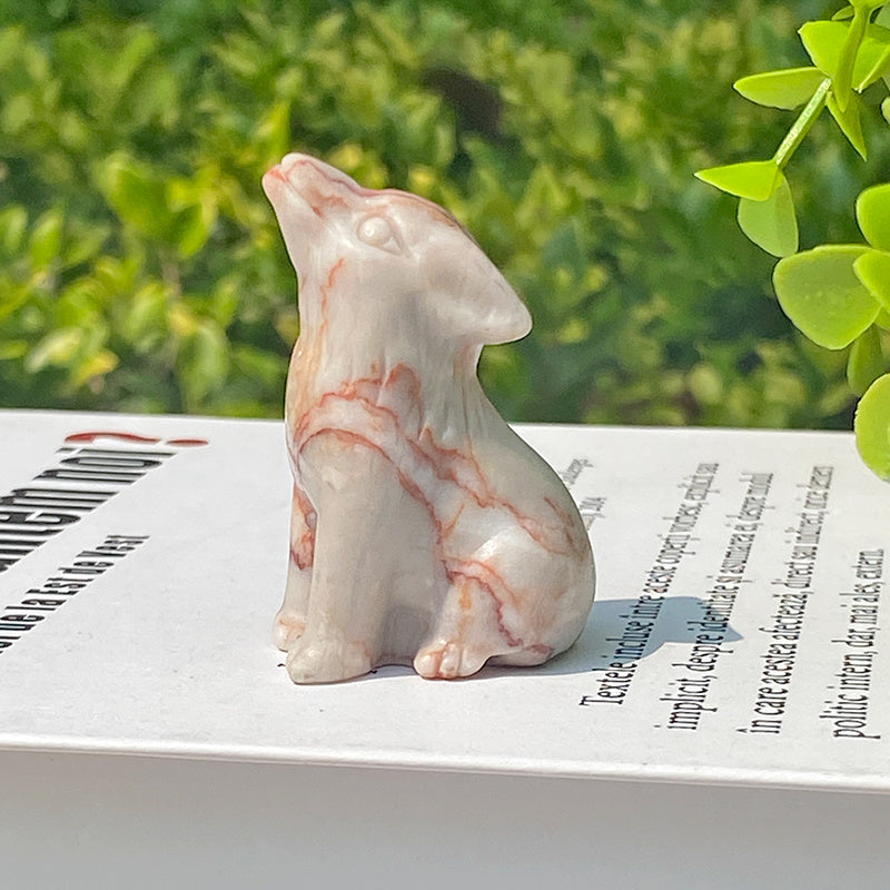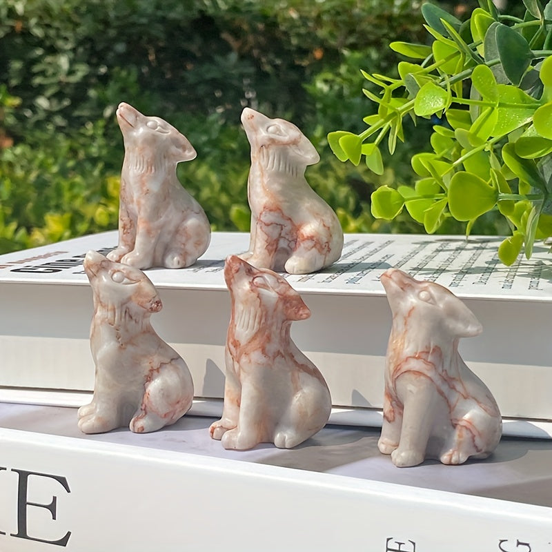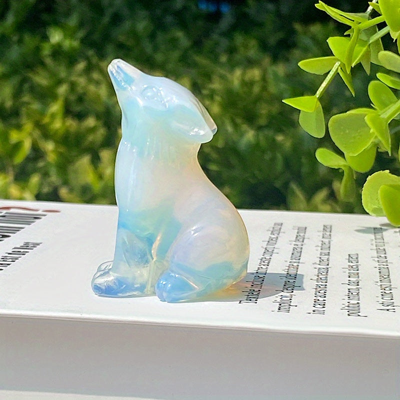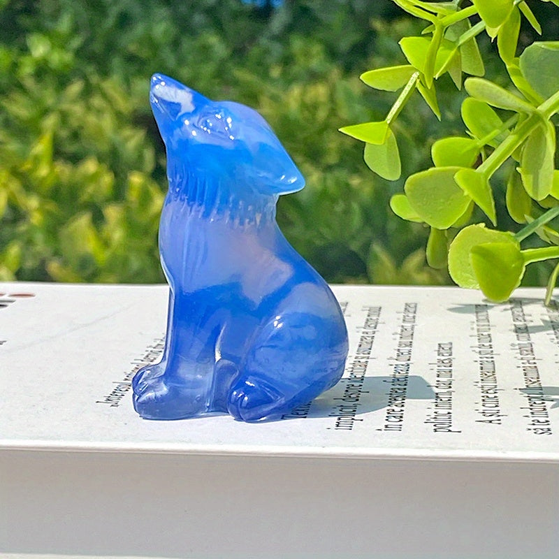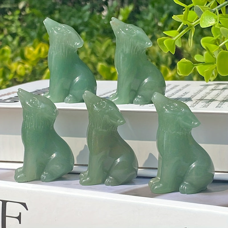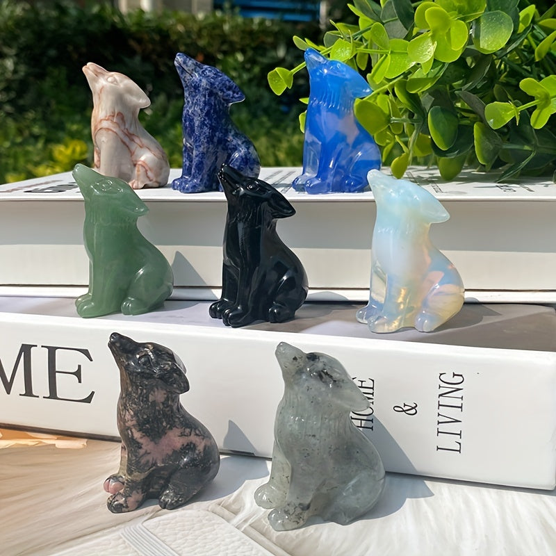 This stunning wolf carving is meticulously crafted from natural Labradorite, Green Aventurine, and Sodalite stones. Each piece is unique and showcases the beauty of these crystals.