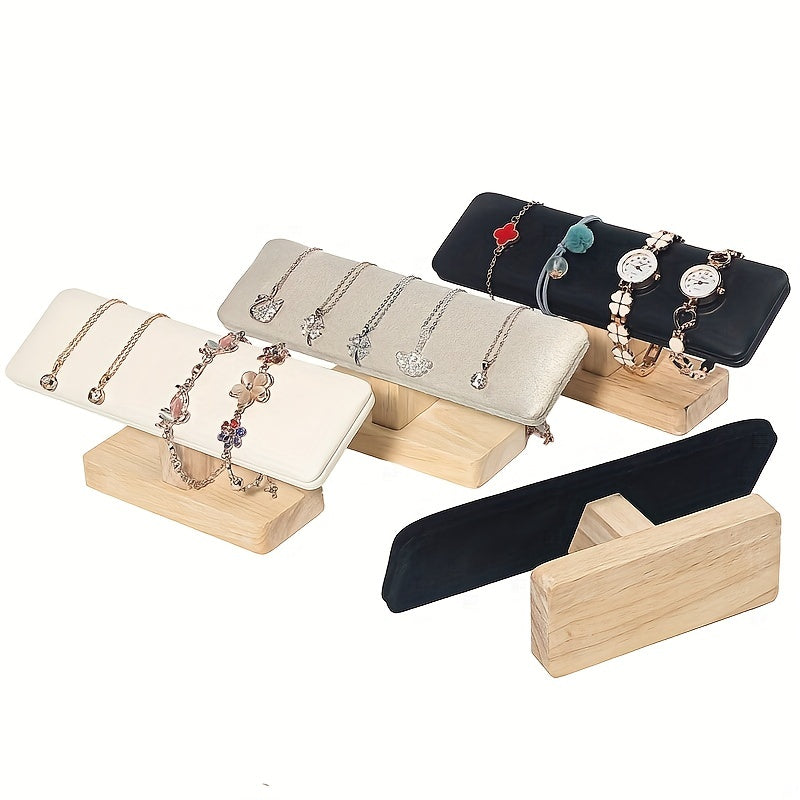 Showcase your bracelets and watches in style with this wooden display rack featuring an I-shaped design. Perfect for organizing and displaying your jewelry collection.