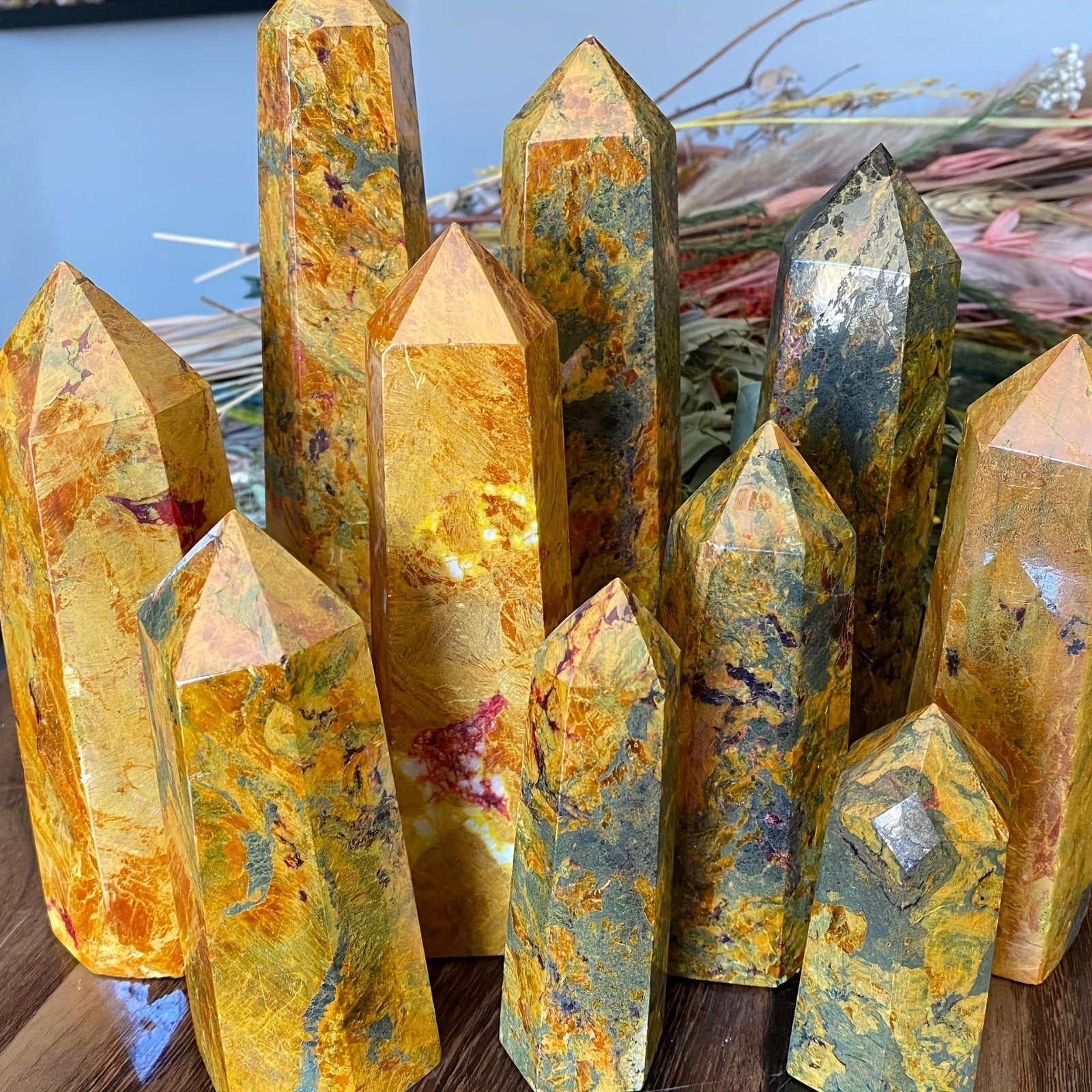 Enhance your space with this beautiful yellow crystal pillar carving ornament. It radiates positive energy and adds a touch of elegance to any setting.