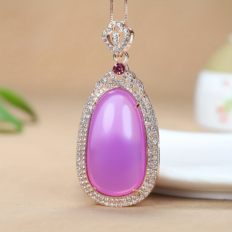 Elegant and versatile zircon pendant set with a large purple water drop pendant. Perfect gift for men, women, friends, grandpa, and grandma on special occasions like Thanksgiving, Christmas, and birthdays.