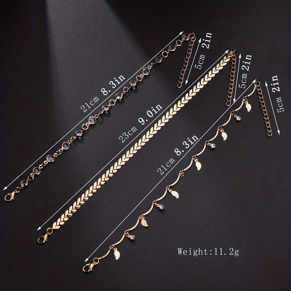 Add a stylish touch to your summer look with this set of 3 anklets featuring tassel, sequin, small leaves, arrow, and faux diamond design. Ideal for men.