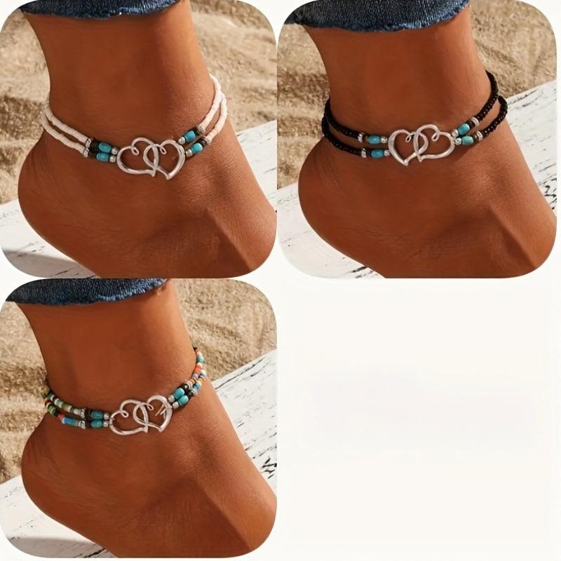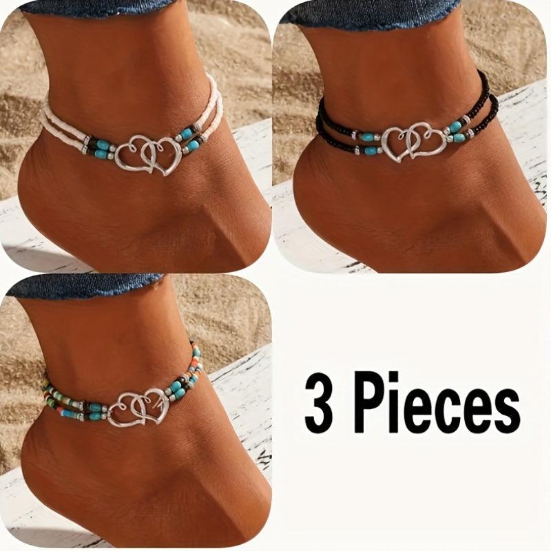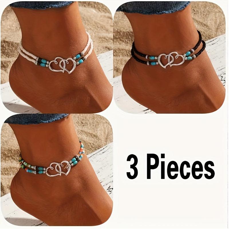 Add a touch of bohemian charm to your style with this set of 3 natural crystal beaded anklets. Perfect for summer days or beach vacations.