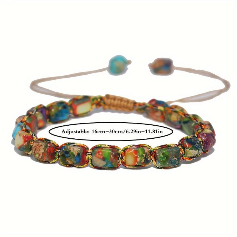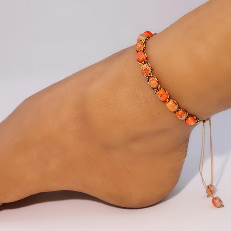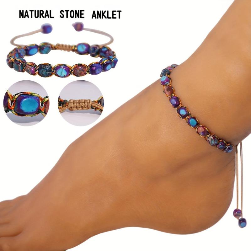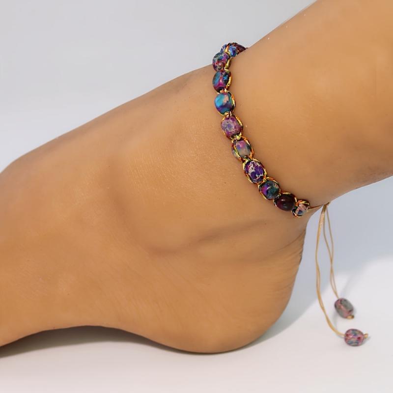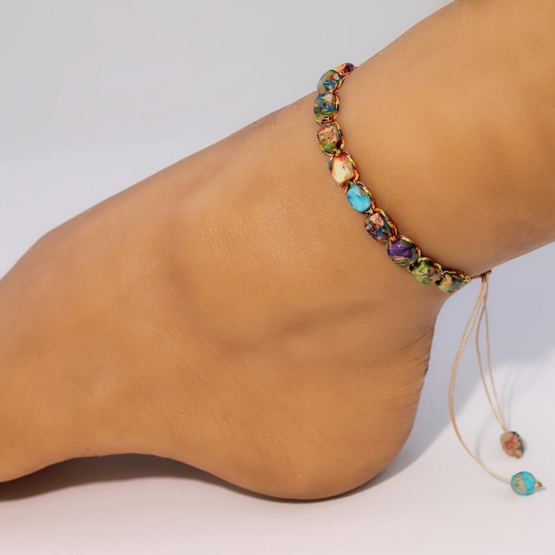 This anklet is hand woven with natural stones and colorful 3D beads on a hemp rope. Versatile enough for daily wear or vacation outfits.
