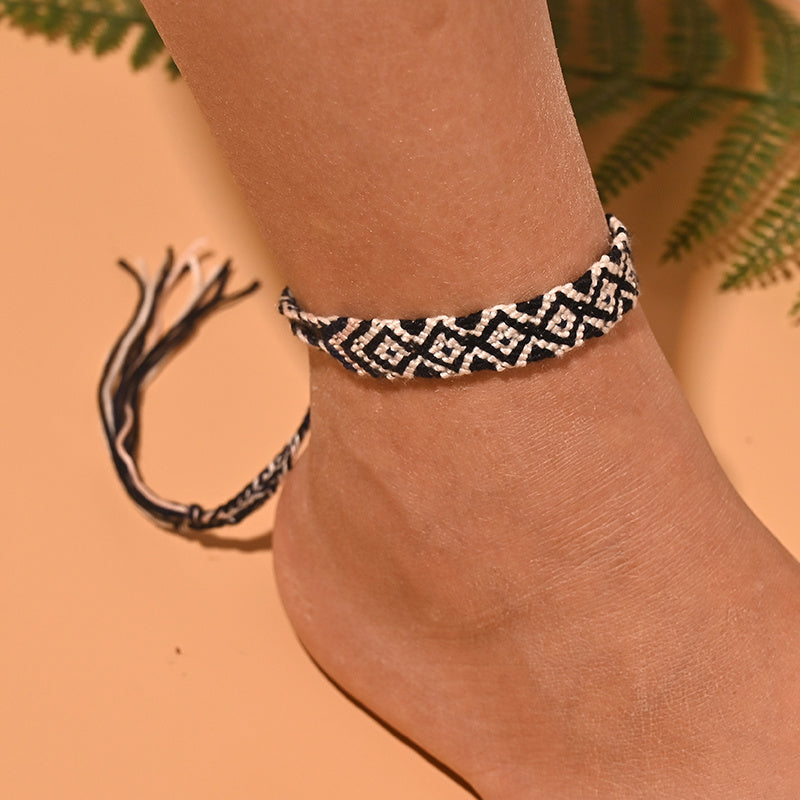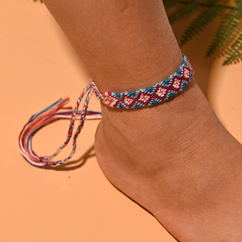 Add a touch of boho style to your ensemble with this stackable braided macrame anklet. Perfect for summer days and beach outings.