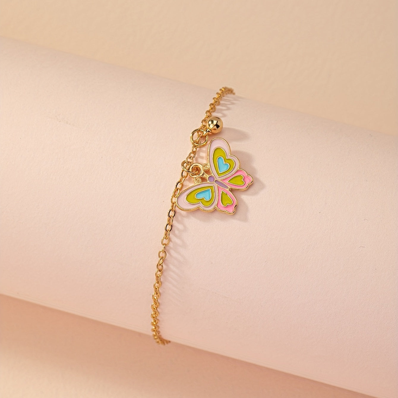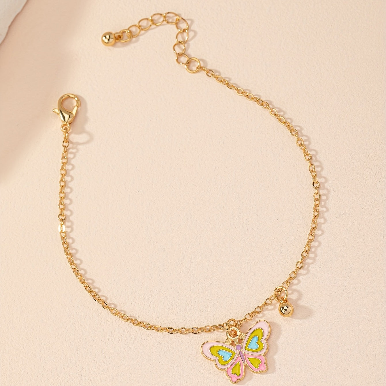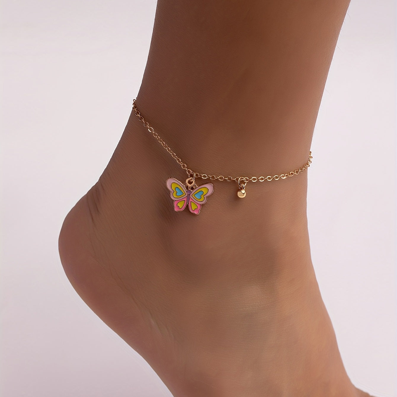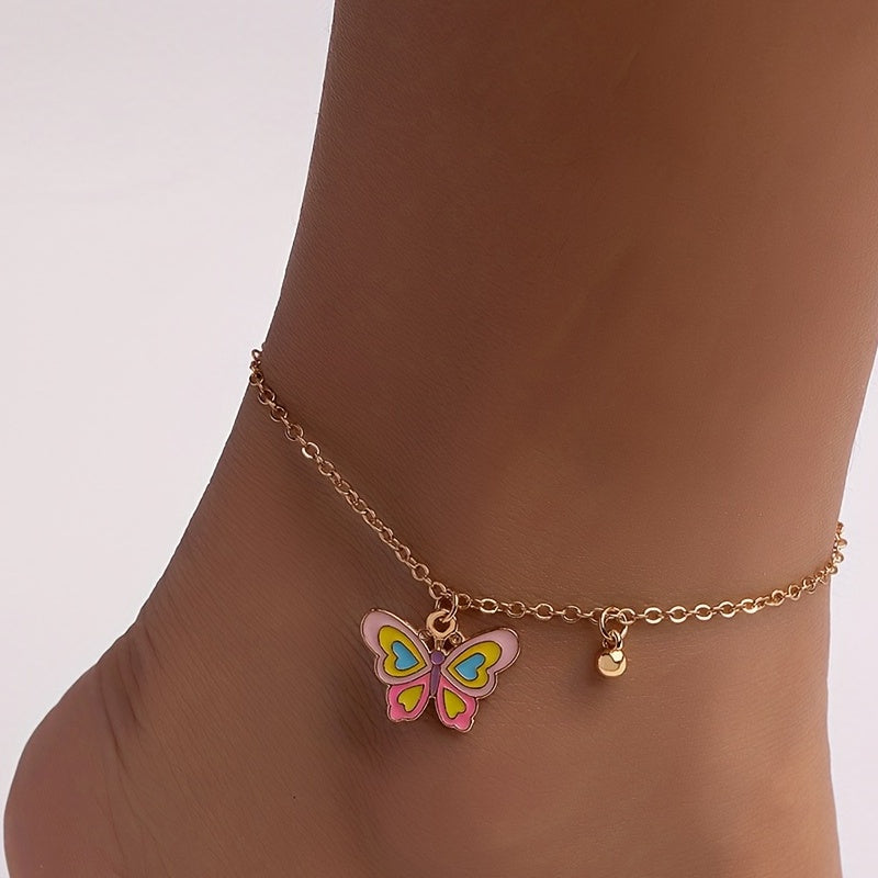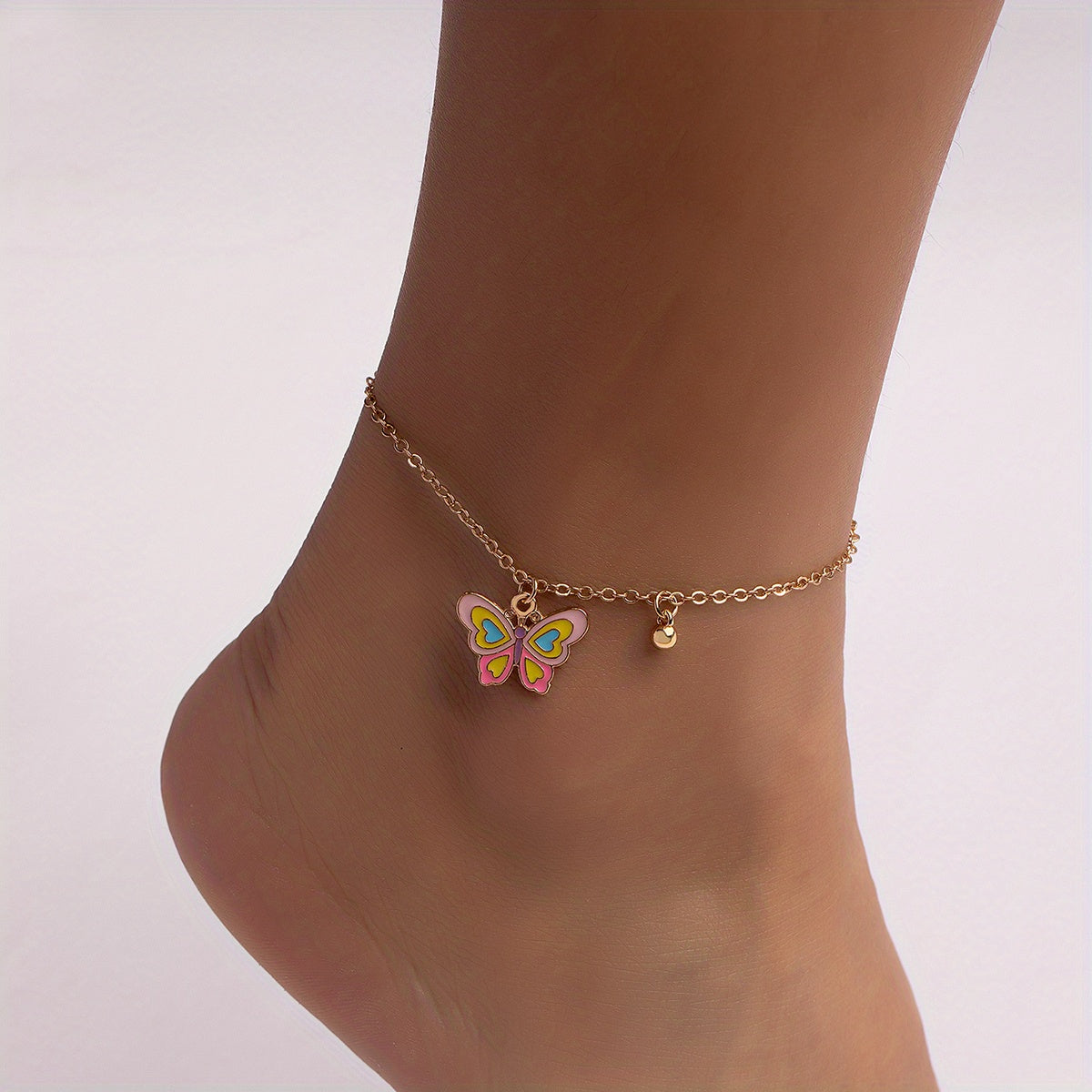 Add a touch of Y2K style to your summer beach look with this colorful thin chain anklet featuring a butterfly shape pendant.