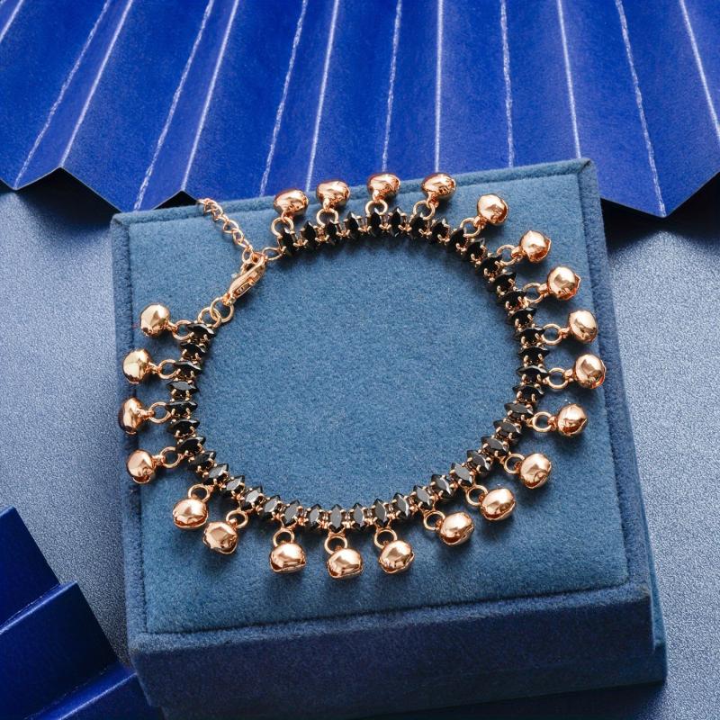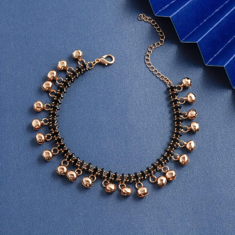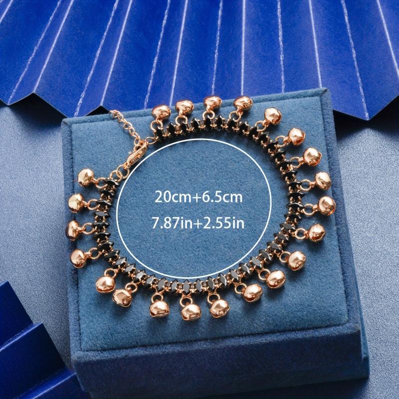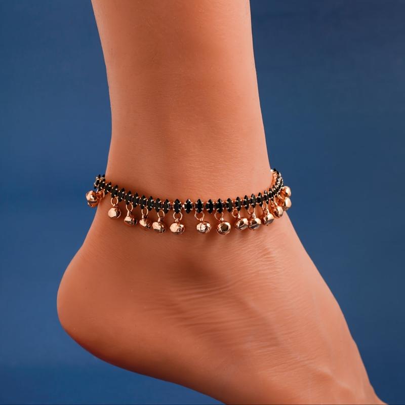 This copper anklet features glass marquise and bell charms, perfect for daily wear and vacation outfits. Vintage style adds a unique touch to your look.