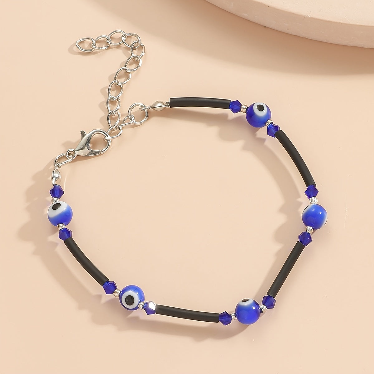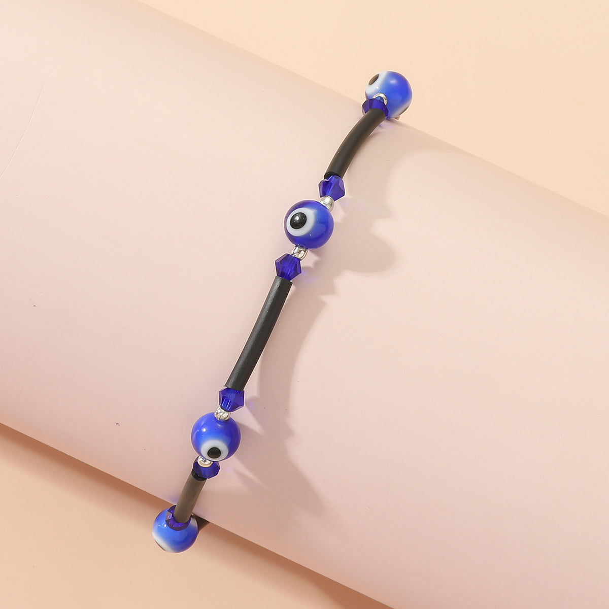 Liven up your summer look with this trendy Devil's Eye anklet adorned with crystal beads. Adjustable design perfect for beach and surfing adventures.