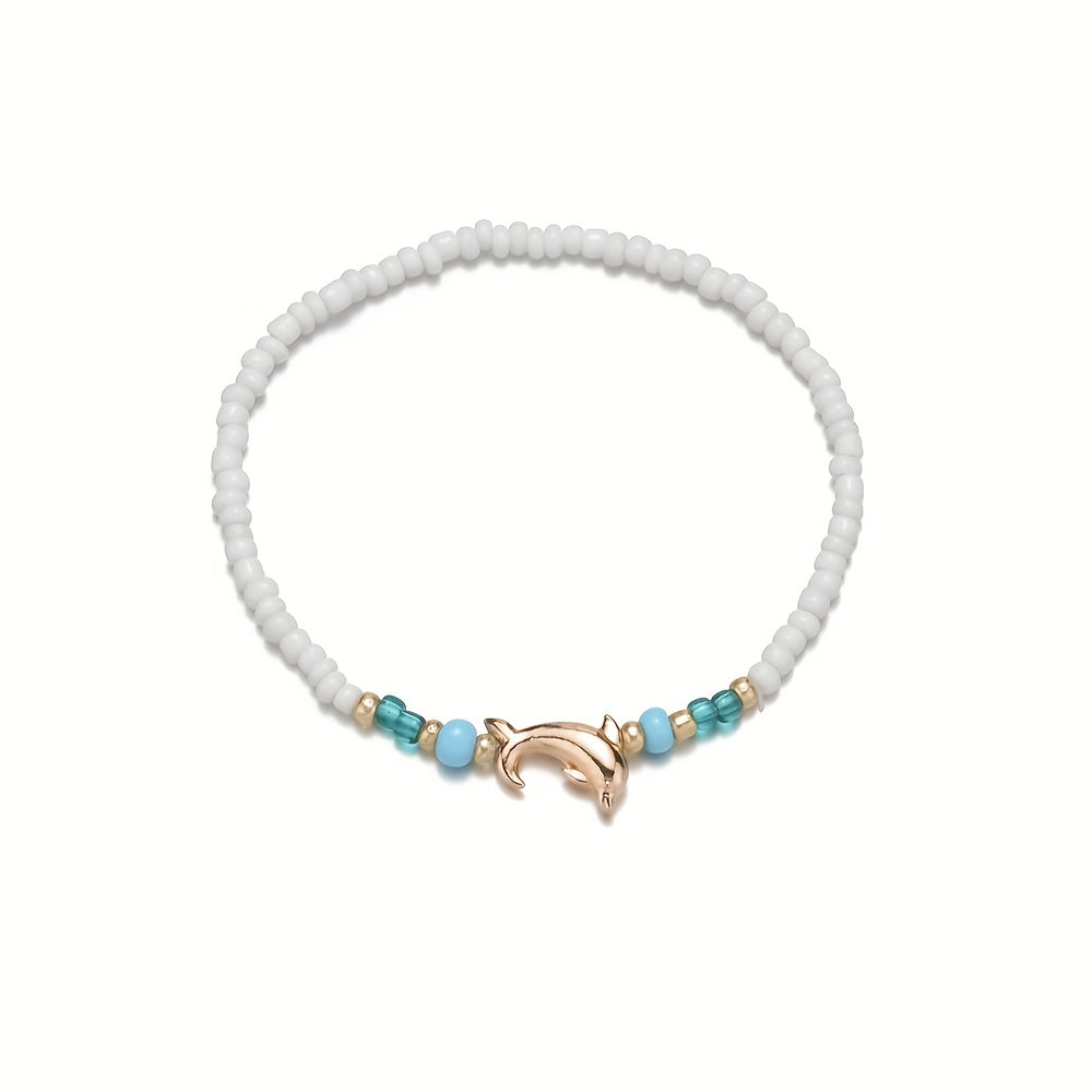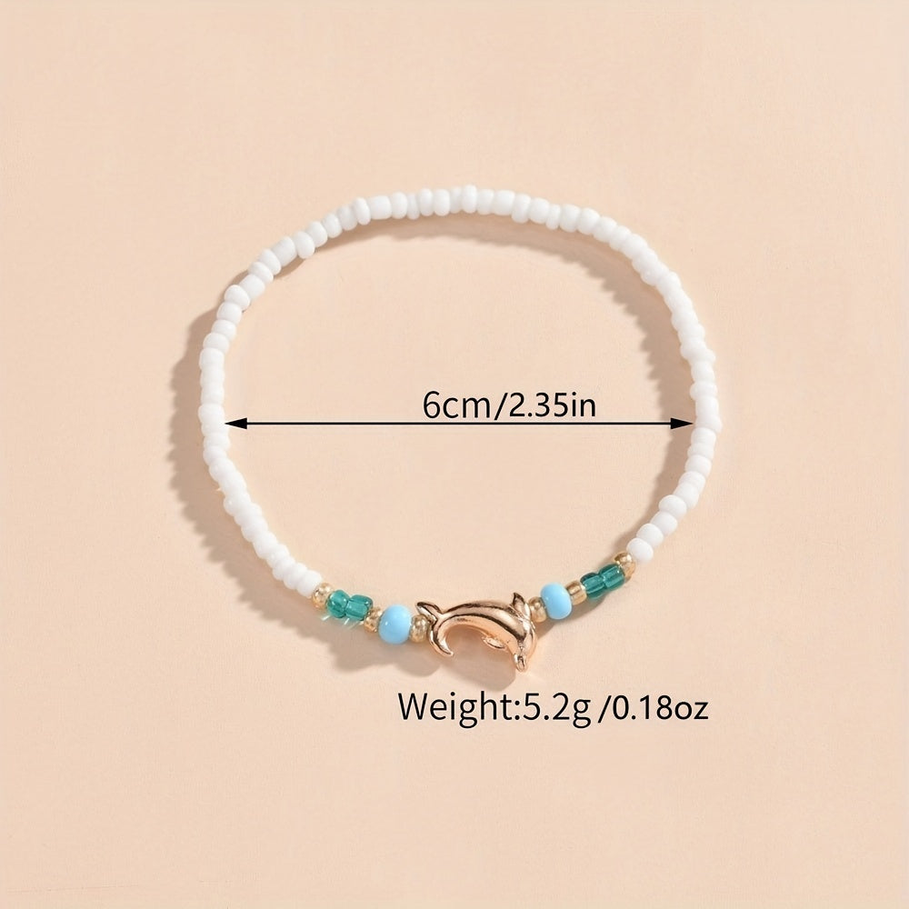 Elegant dolphin-shaped beaded anklet with rice beads, perfect for adding a touch of style to your foot jewelry collection.