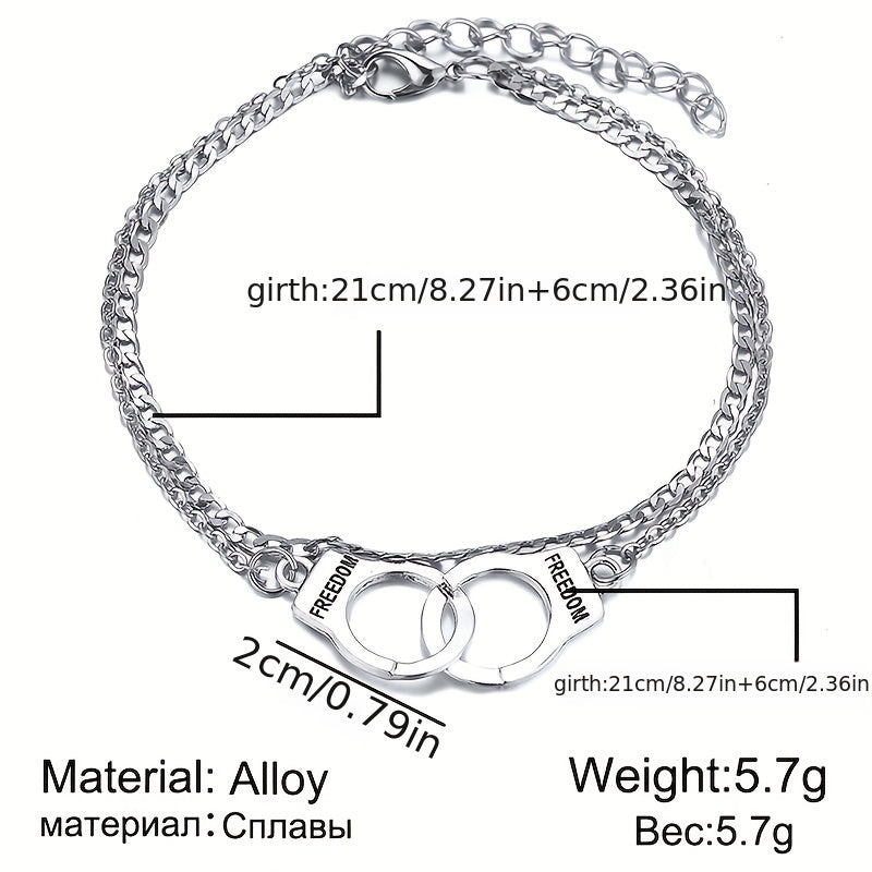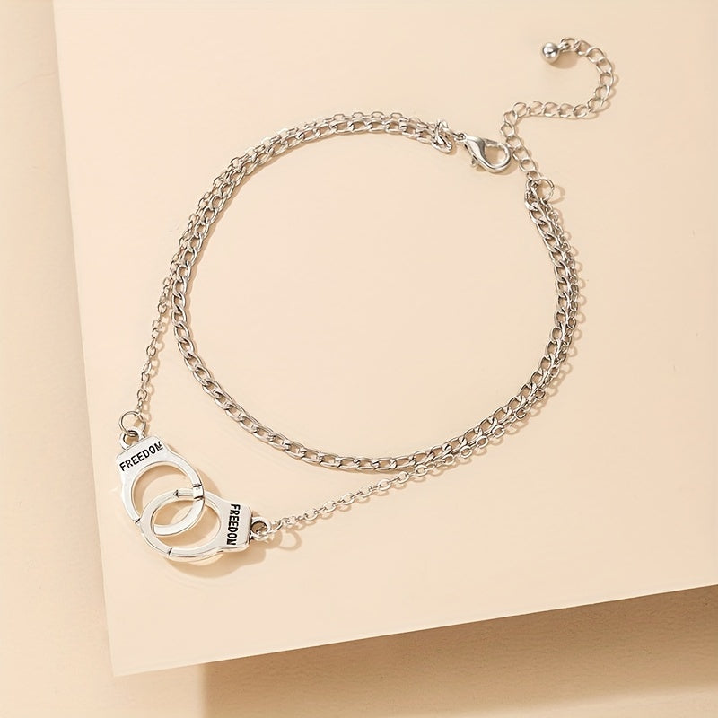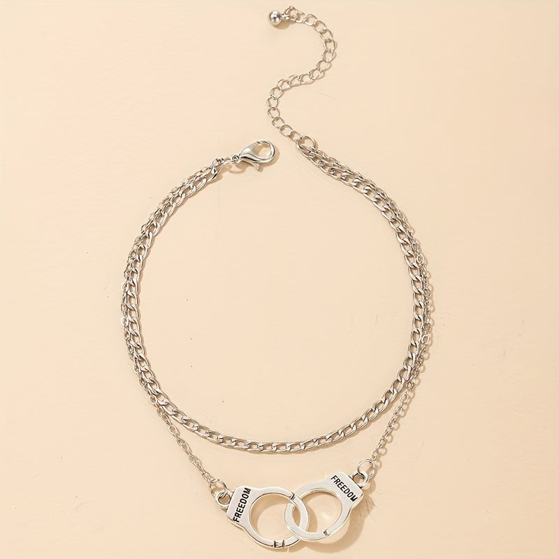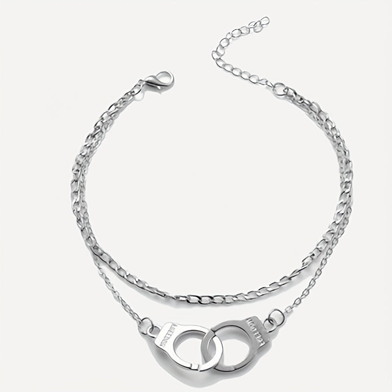 Elevate your style with this creative anklet featuring a double chain design and small handcuffs. Perfect for adding a bold touch to your look.
