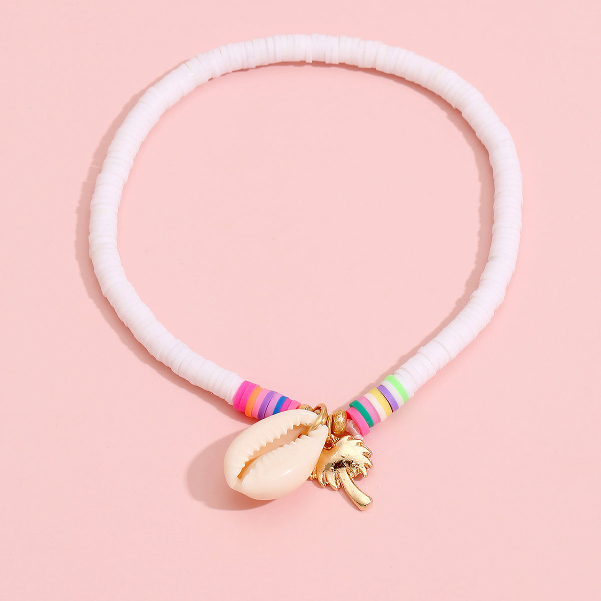 This elegant anklet is designed for women, featuring a delicate pottery scallop coconut pendant. Perfect for adding a touch of charm to any outfit.