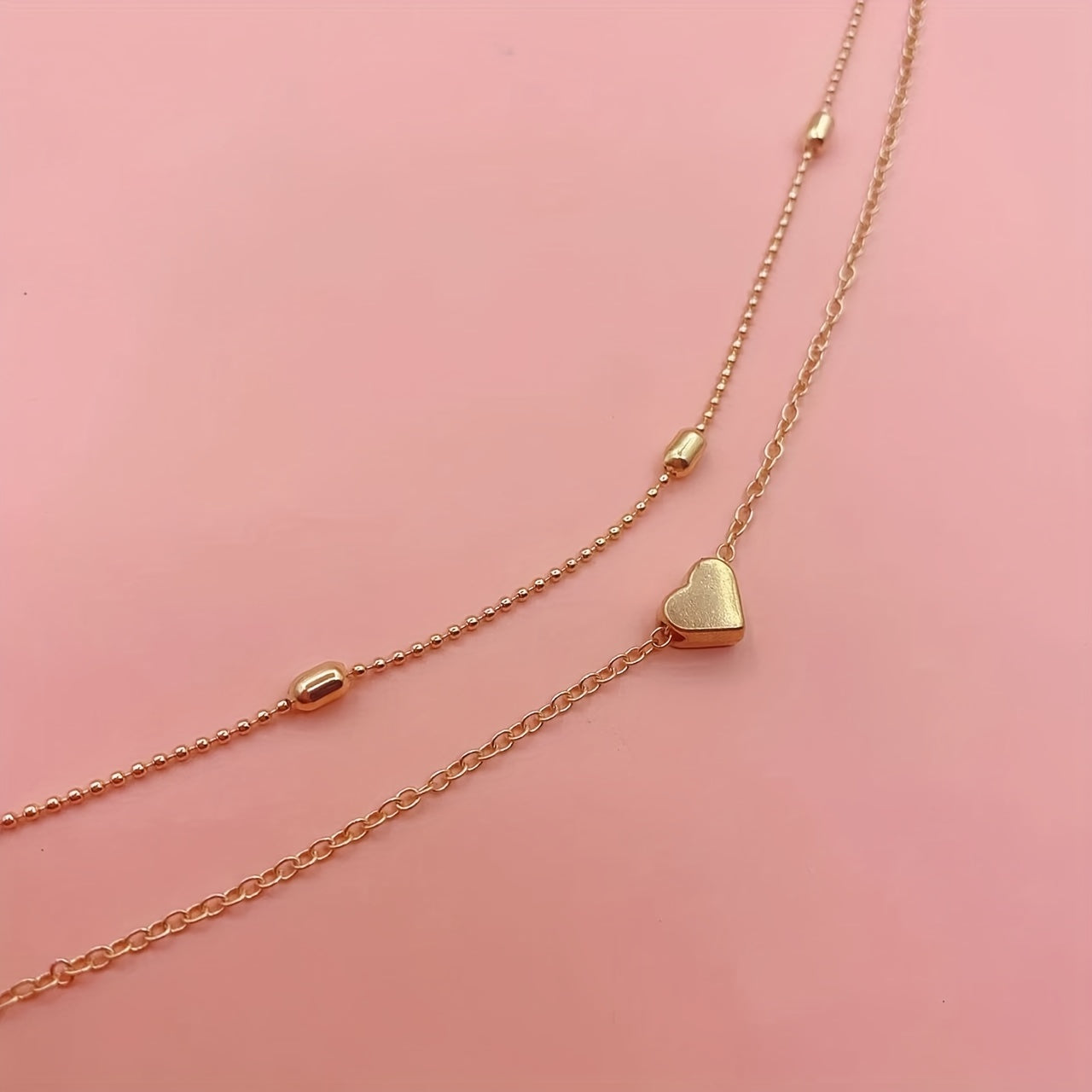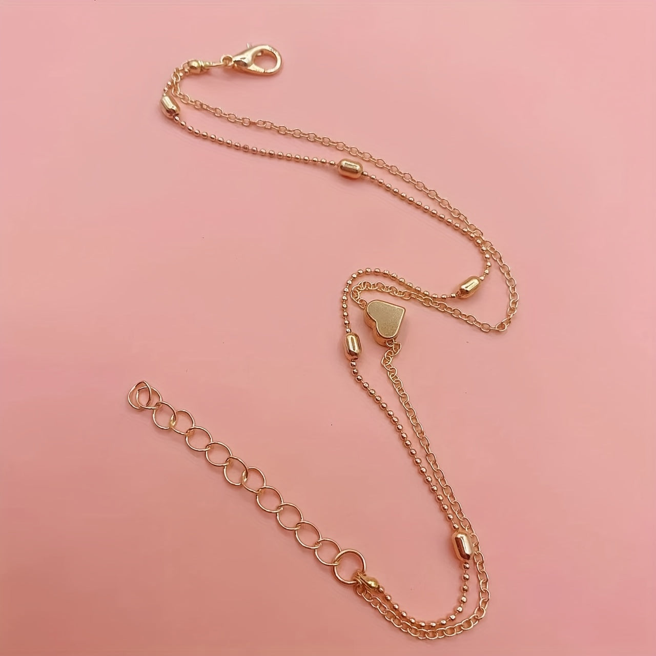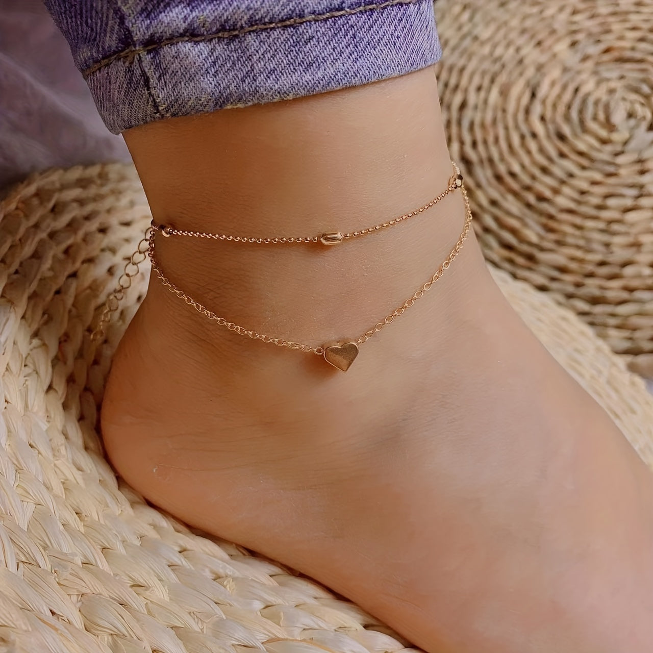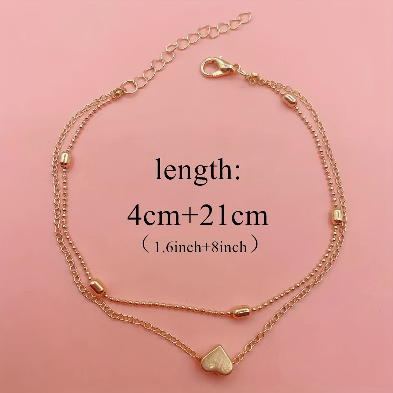 This anklet set features double layer design with love heart beads, perfect for adding a touch of charm to your look.