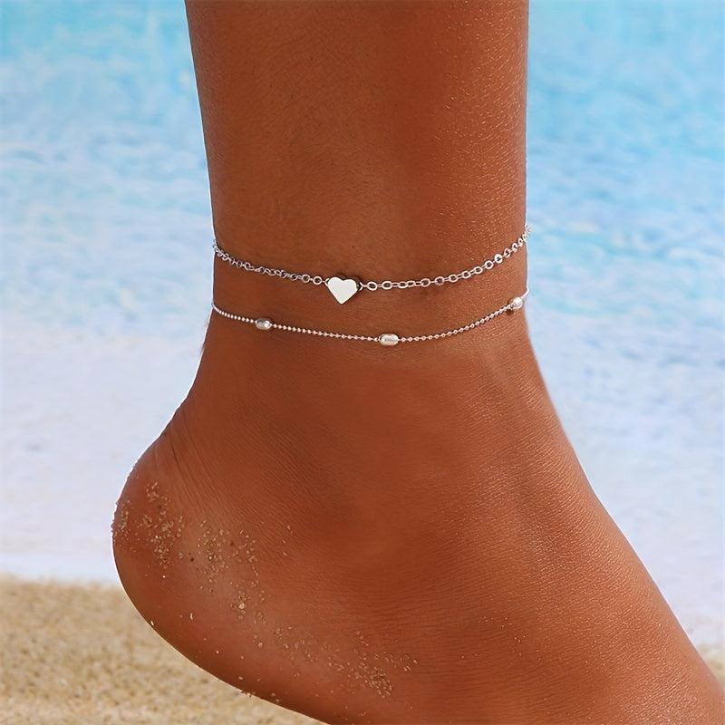 Adorn your ankle with this charming double-layer anklet featuring mini love heart chain. Perfect accessory to add a touch of elegance to your outfit.