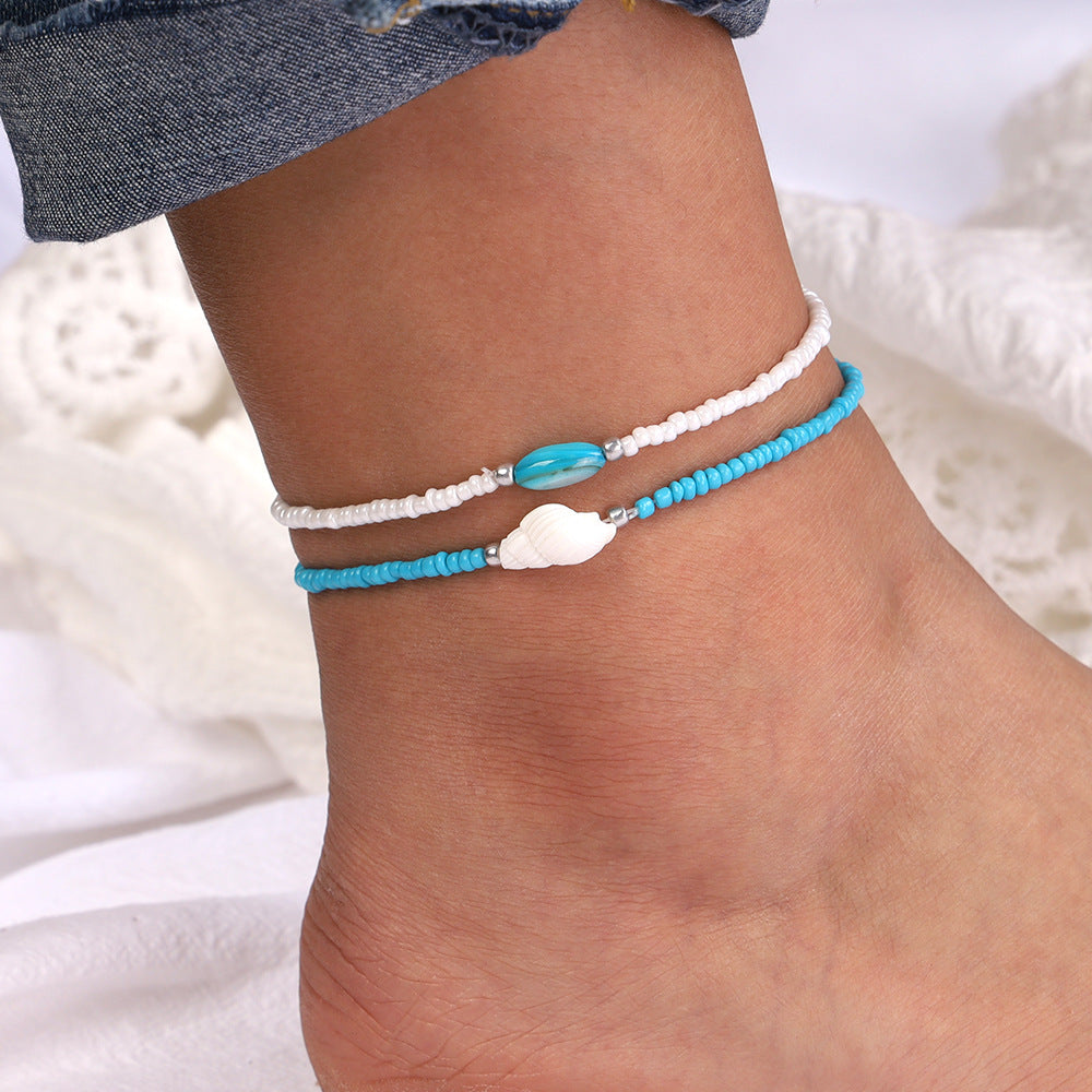 Add a touch of vintage beach style to your look with this two-piece anklet featuring rice pearls. Perfect for casual outings or beach days.