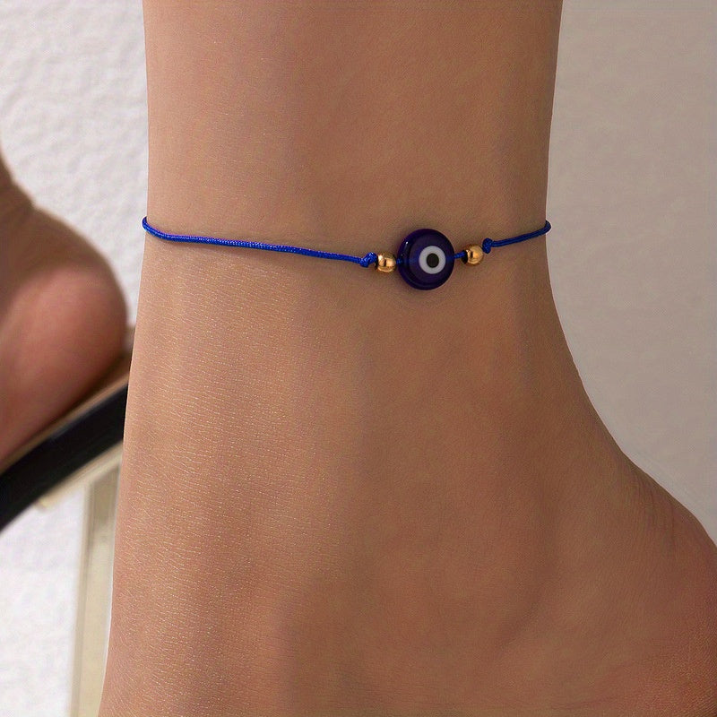 This rope anklet features devil's eye shape beads, perfect for adding a touch of personality to your summer beach look. It is a single layer design that complements various outfits.