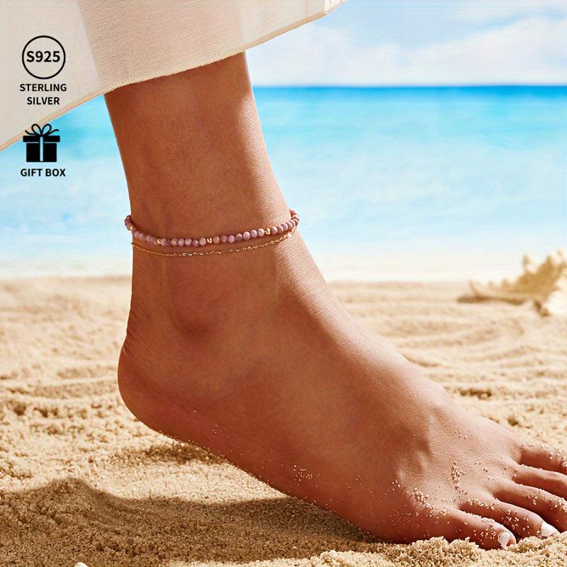 This double layer anklet is made of S925 silver, weighing 3.99g. It's a trendy and fashionable accessory, perfect for an anniversary, birthday, Christmas, Halloween, or year present.