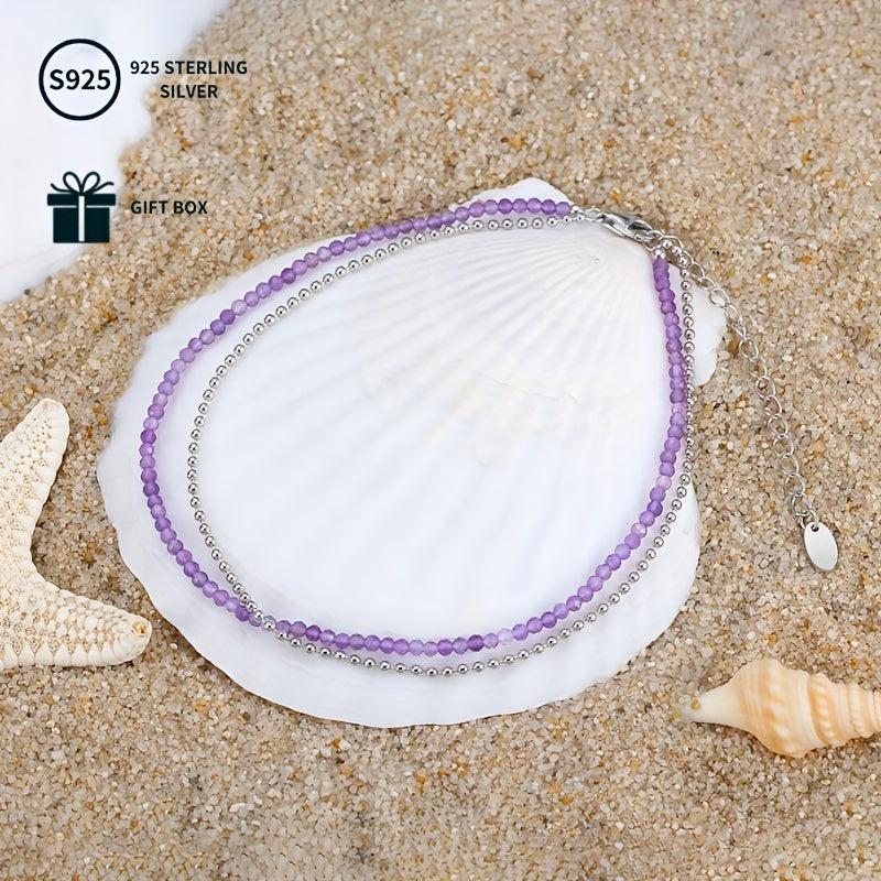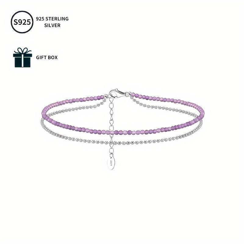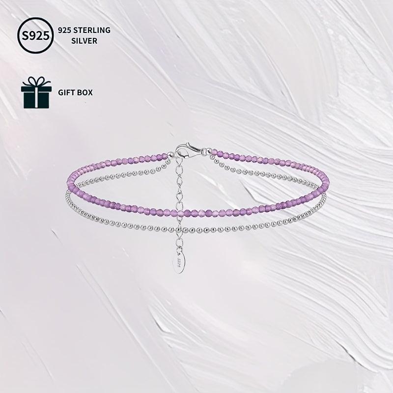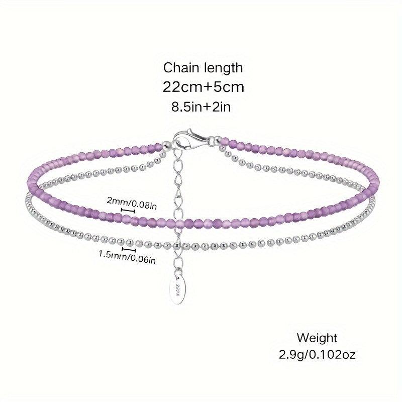 S925 Sterling Silver Natural Amethyst Double Layered Anklet